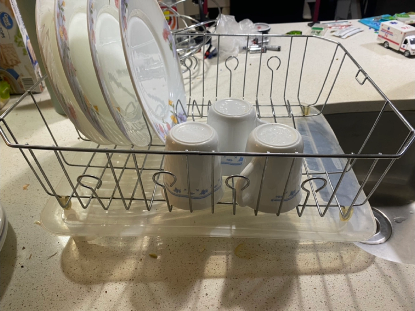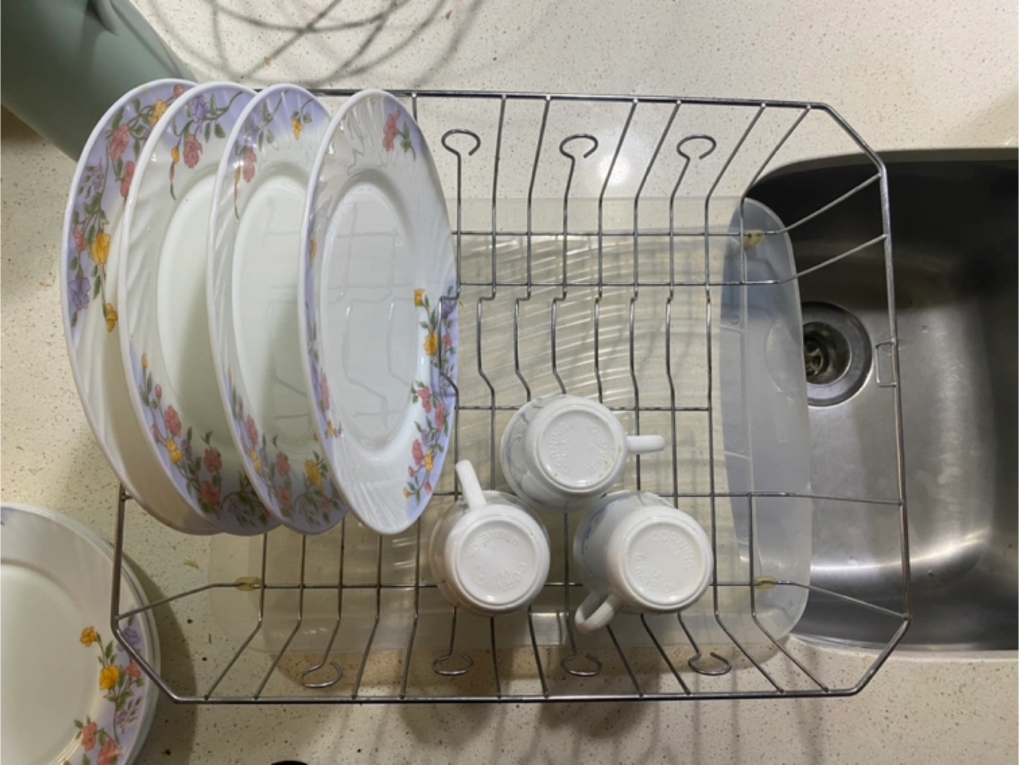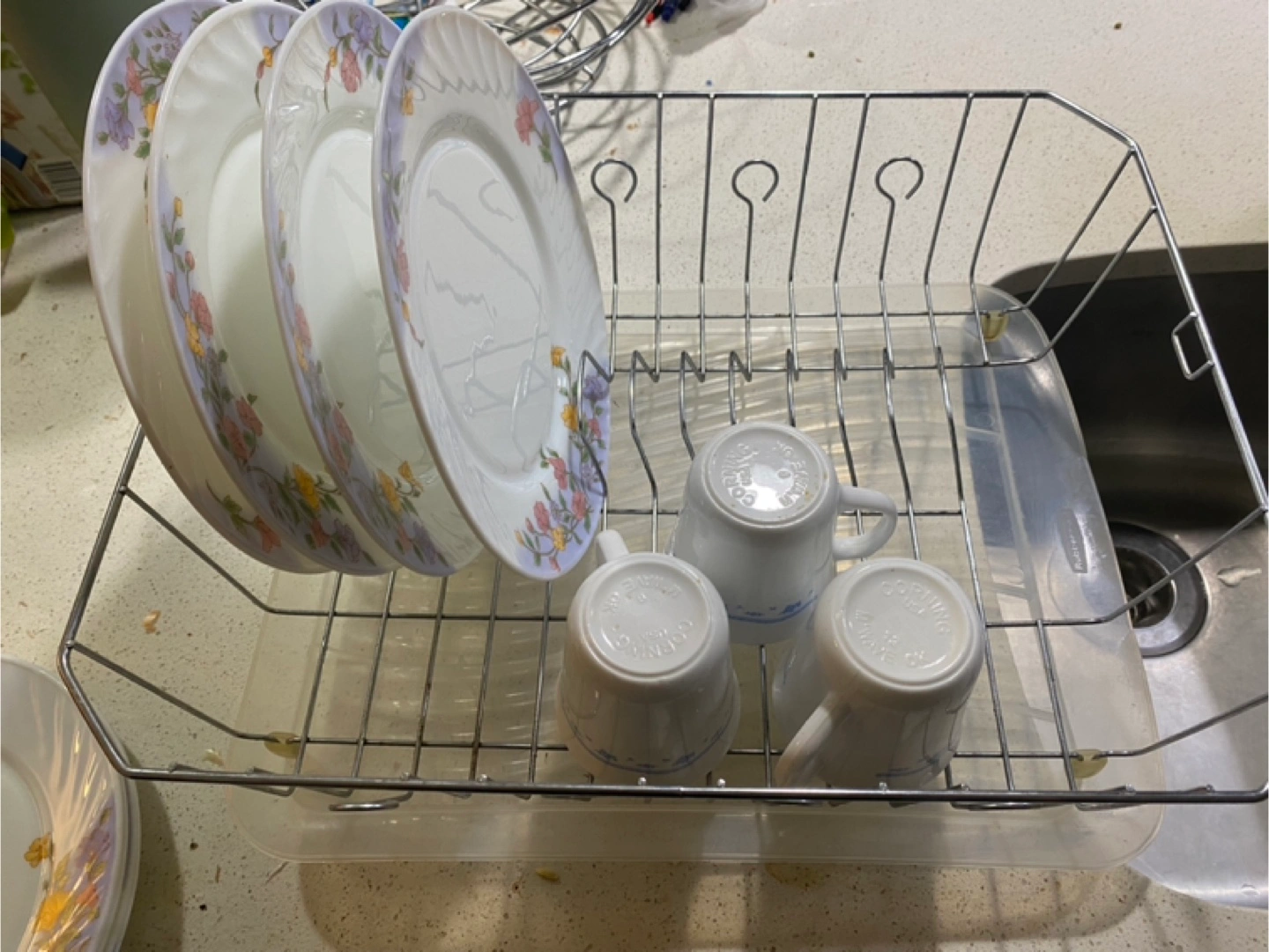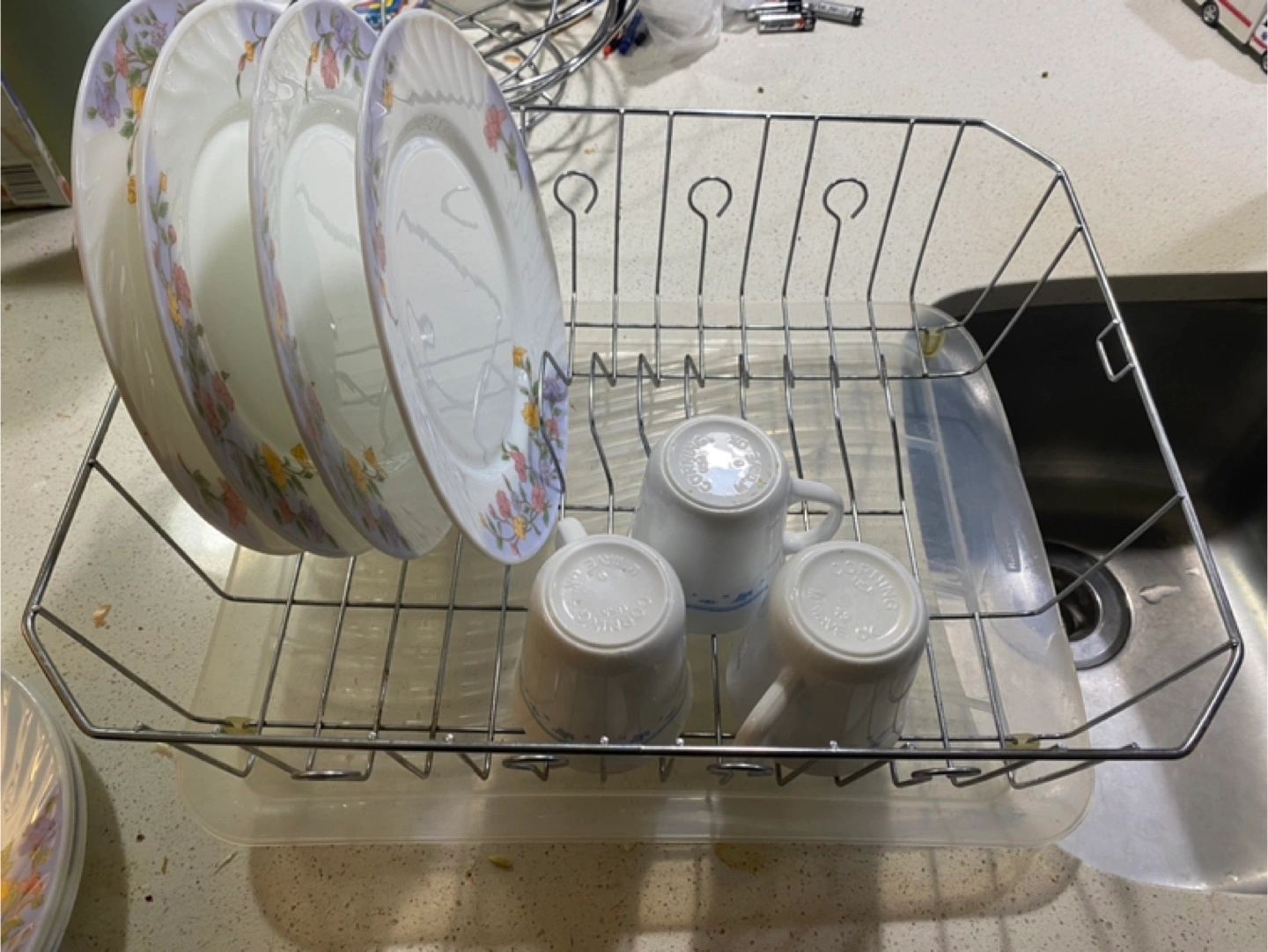 Dish rack, perfect for drying your dishes. Features a chrome frame and a plastic tray. This rack is designed to make washing dishes much more relaxing. Both Drying Rack & Plastic Tray $20. Pick Up in the Legacy area.