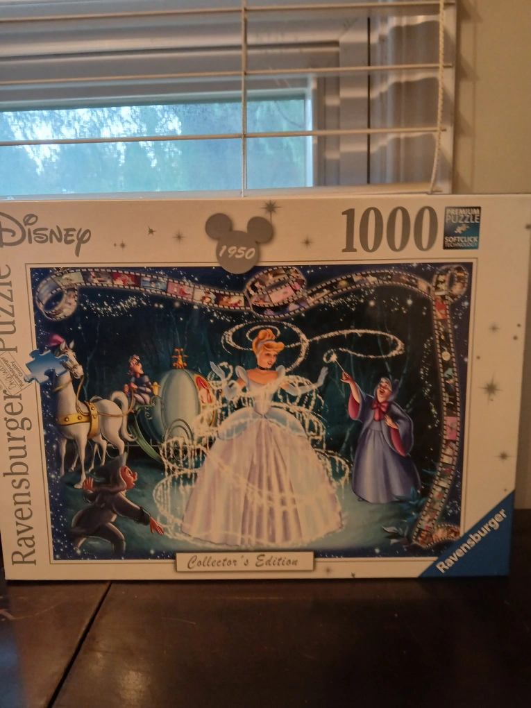15Selling a Disney Cinderella 1000-piece puzzle by Ravensburger! It's a Collector's Edition puzzle with Premium Puzzle Softclick Technology. Enjoy piecing together this beautiful scene!