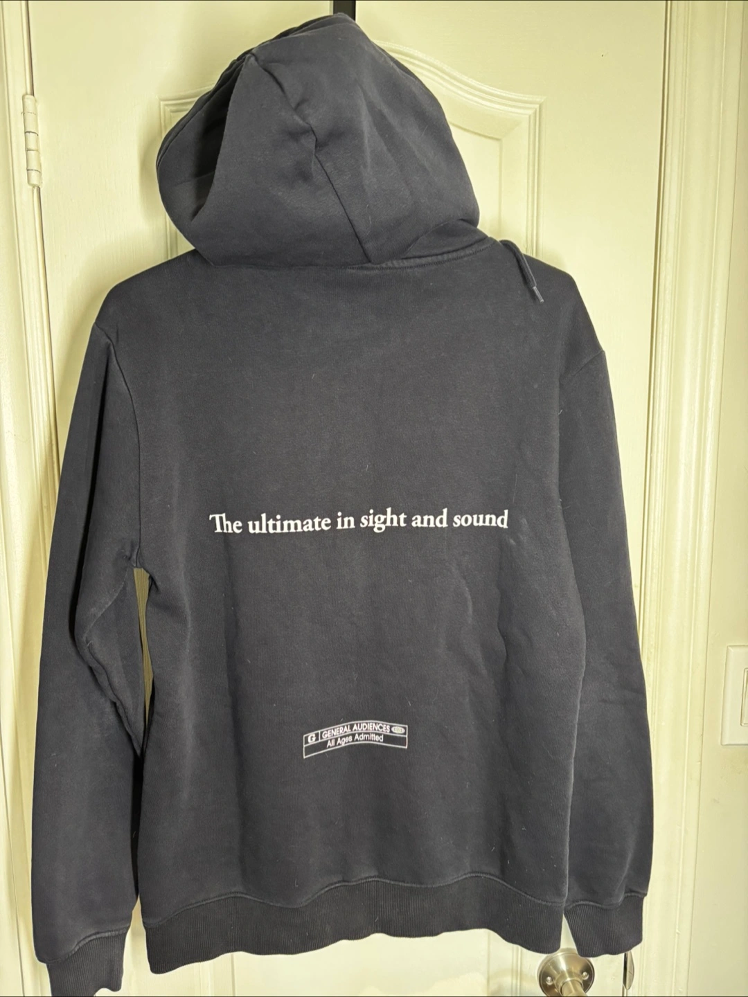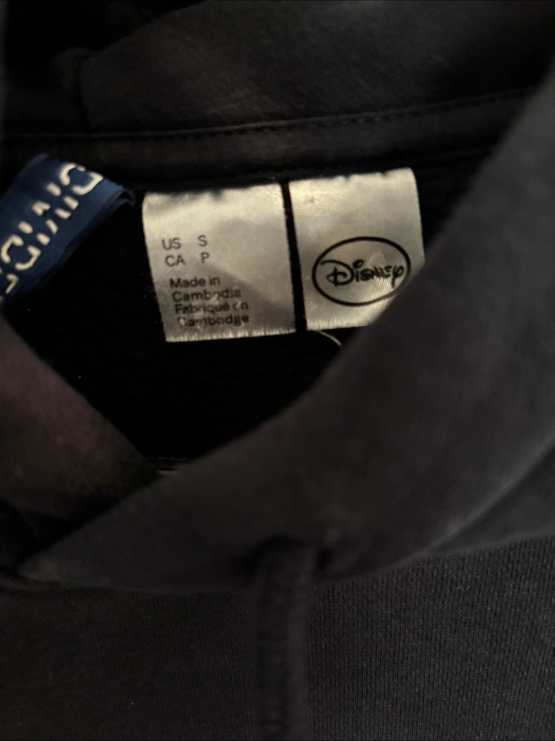 Black Disney Fantasia hoodie. Features Sorcerer Mickey graphic on the front and "The ultimate in sight and sound" on the back. Size small. Made in Cambodia. DISNEY FANTASIA HOODIE SIGHT & SOUND SIZE SMALL Pickup in Richmond Hill I sell vintage/used pieces. As a buyer of vintage or used objects you should assume a baseline of mild wear. If you expect normal minor wear you will be happy with your purchase.