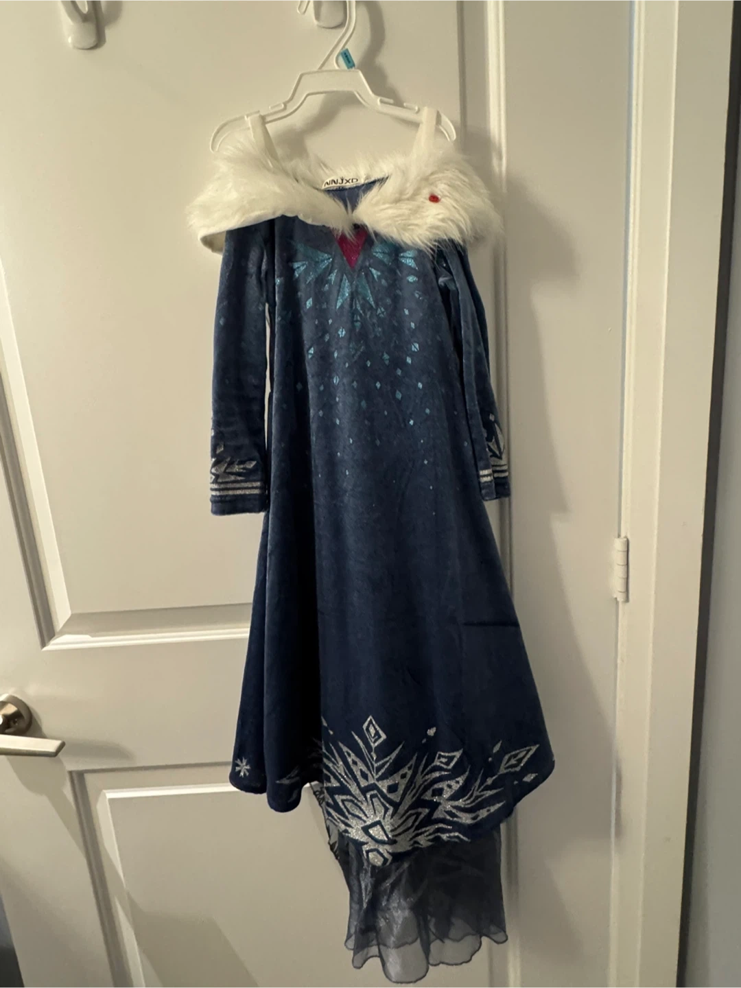 Selling a beautiful Elsa dress from Disney's Frozen! It's in great condition, girls size 5/6 and perfect for any little fan who wants to dress up as their favourite ice queen. The dress features a lovely design with snowflake details and a faux fur collar. It's sure to bring lots of joy and imaginative play!