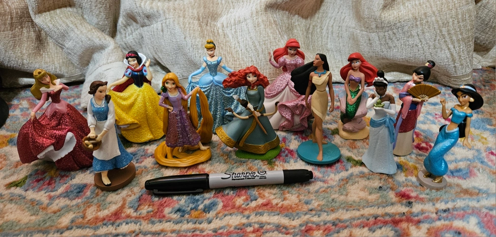 113Collection of Disney figurines. Includes Frozen characters: Anna, Elsa, Kristoff, Sven, and Olaf. Also includes various Disney Princess figurines: Snow White, Cinderella, Aurora, Ariel, Belle, Rapunzel, Merida, Pocahontas, Mulan, Tiana, Jasmine. Small collectible figurines, great for kids or collectors. 60 for both sets or 30 for each. can be bought both together or just the one you like.