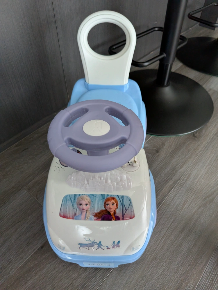 Your little one will love this Frozen 2 ride-on car! It's in great condition and ready for a new home. Perfect for toddlers who are fans of Elsa and Anna!