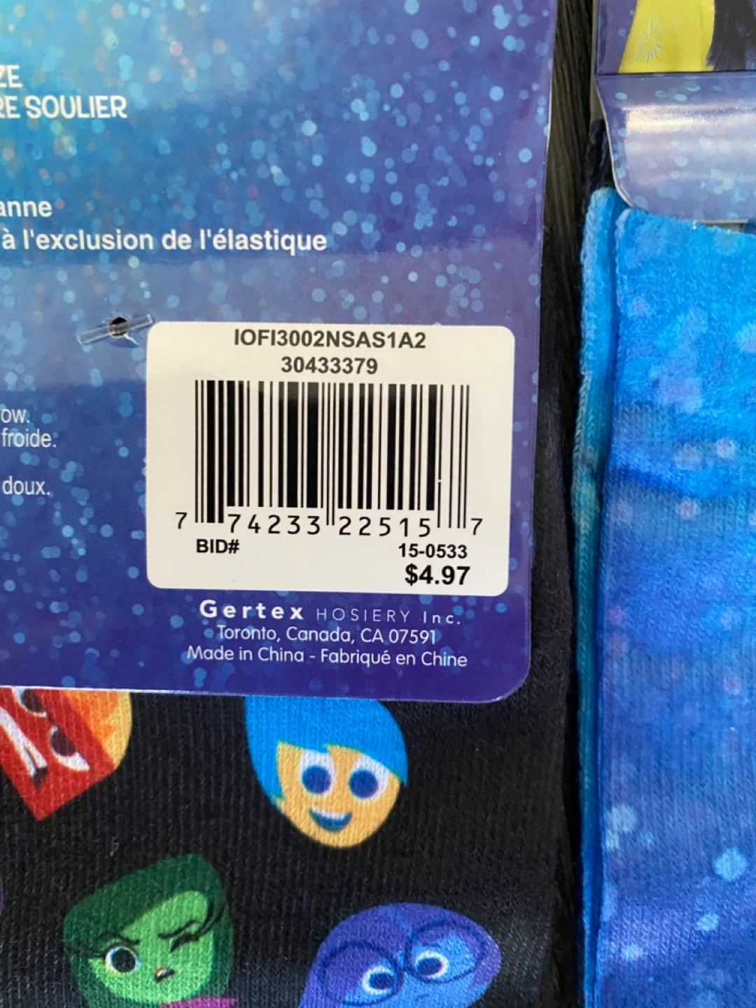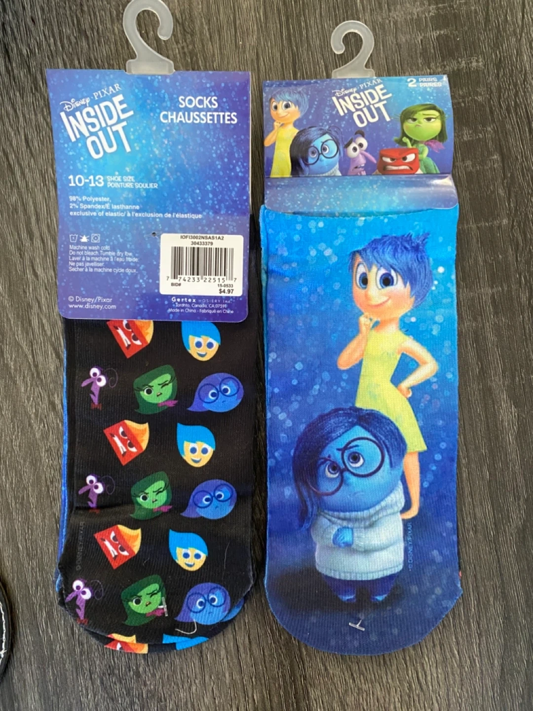 60Here are two pairs of Disney Pixar Inside Out socks! They are size 10-13 and made of 98% polyester and 2% spandex Pick up only Brampton 410 & sandalwood