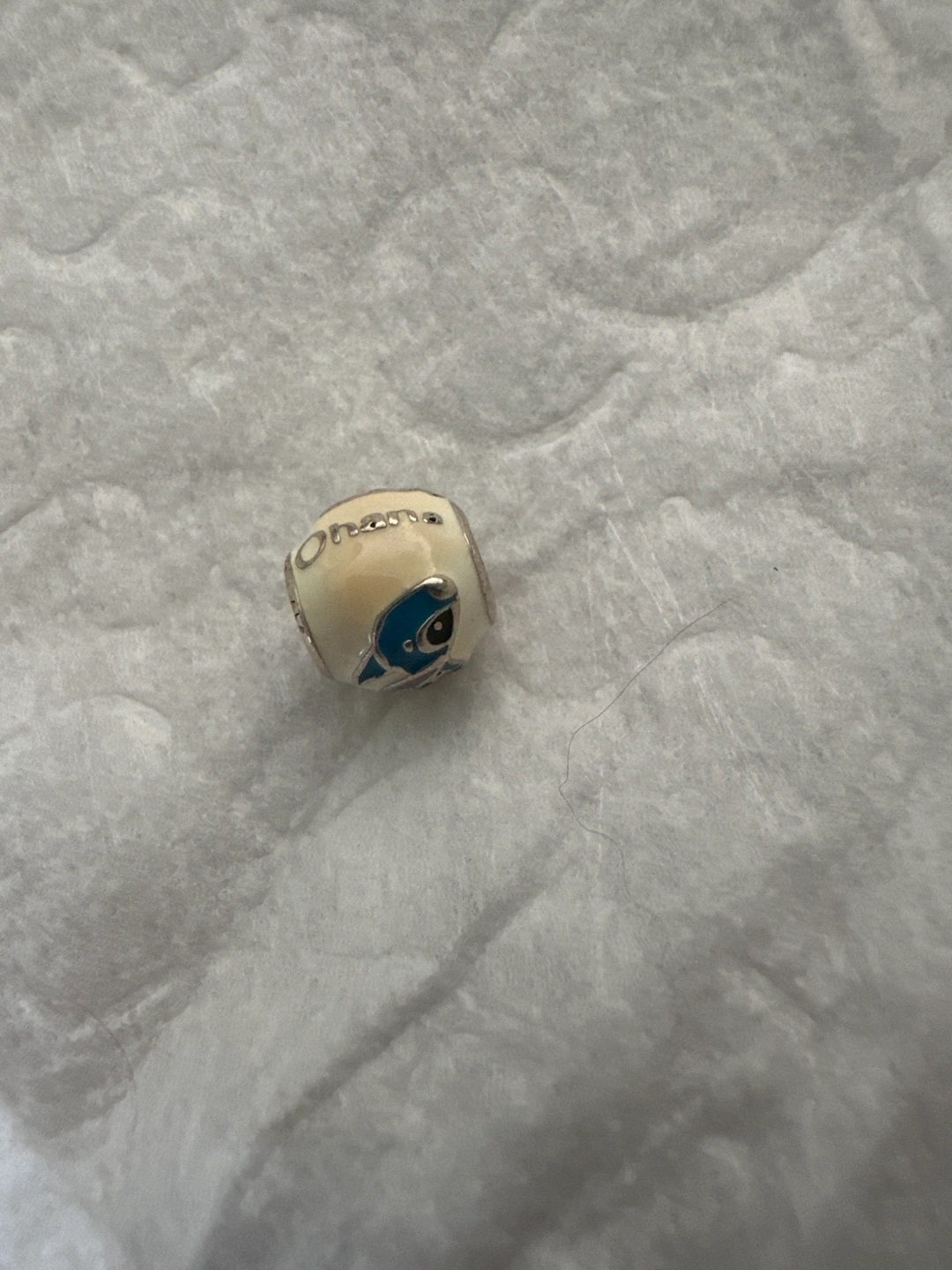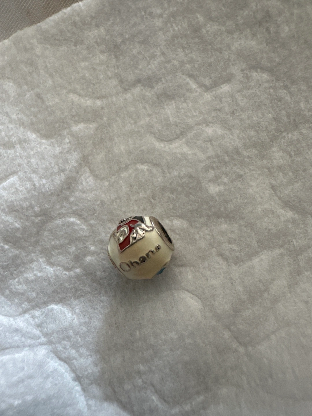 Authentic Disney charm bead. Features Lilo & Stitch and the word Ohana. Off-white base with colourful accents. Great addition to your Pandora bracelet or similar.