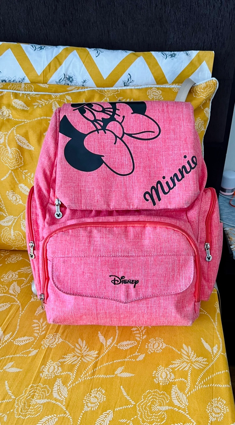 Large pink backpack. Features Minnie Mouse design. Multiple pockets and zippers. Great for everyday use. Minnie Mouse Pink Diaper Backpack Bag in Brand new Condition.