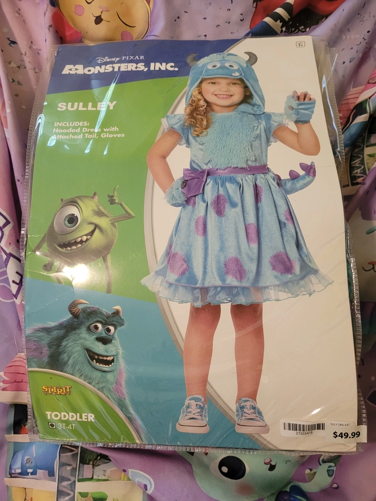 15Get your little one ready for some monstrously fun adventures with this adorable Sulley costume from Disney Pixar's Monsters, Inc! This toddler-sized (3T-4T) costume includes a hooded dress with an attached tail and gloves. Originally bought for $49.99, it's in great condition and ready for a new home!