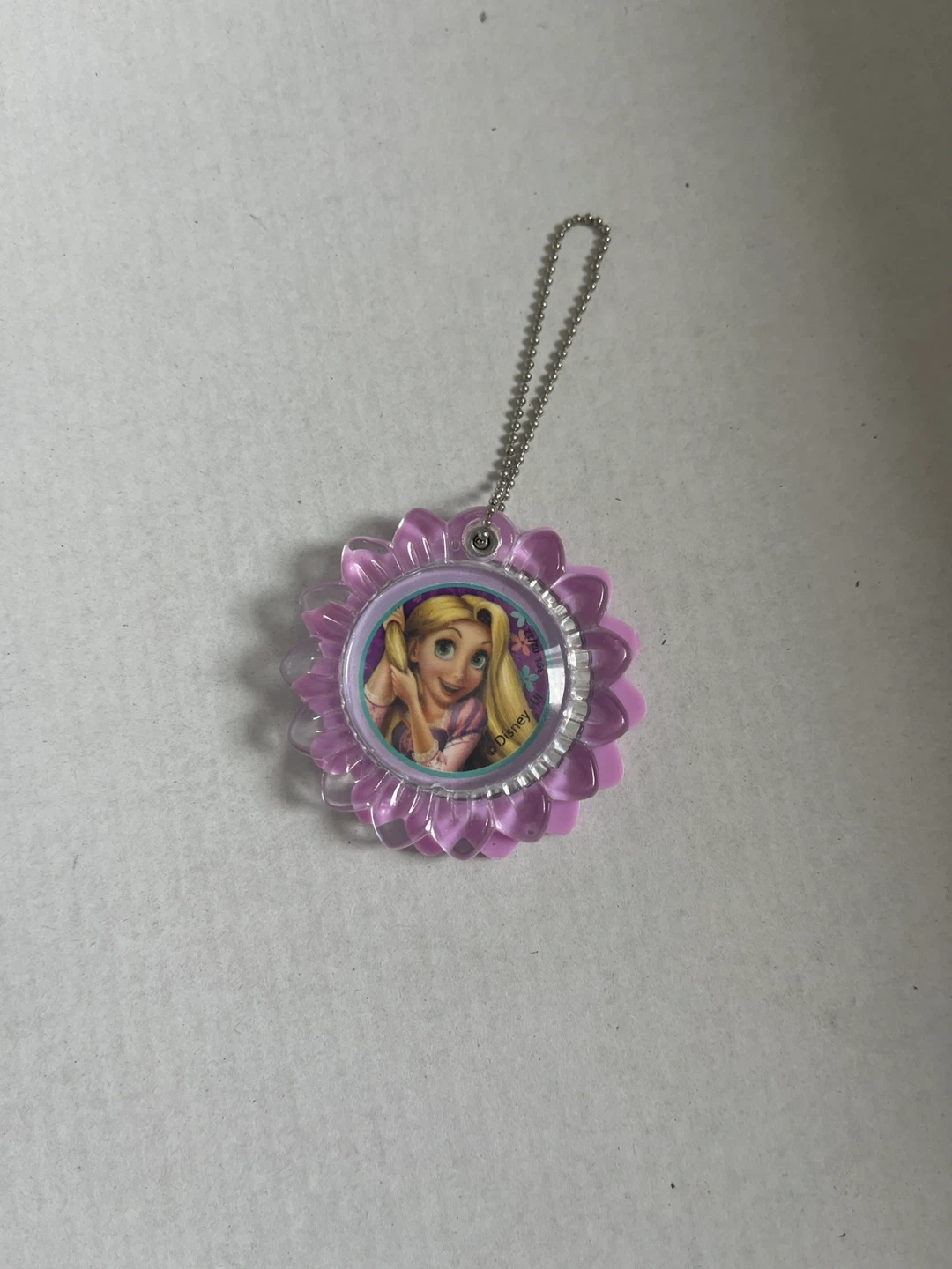 65Selling a cute Rapunzel keychain from Disney! It features Rapunzel in a flower-shaped frame with a beaded chain