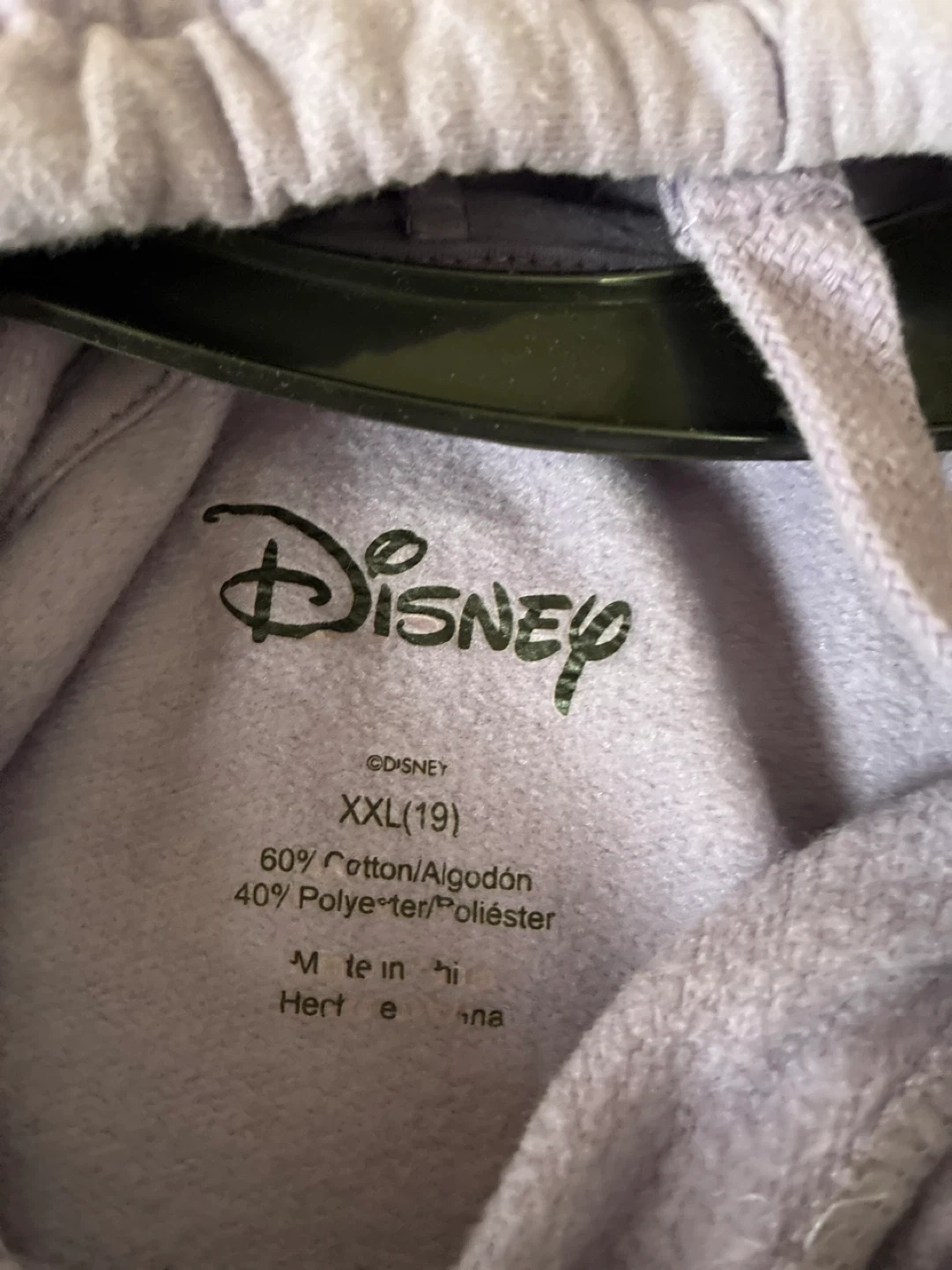 Selling a cute Disney Stitch hoodie in size XXL! It's a light purple color and made of 60% cotton and 40% polyester, so it's super comfy