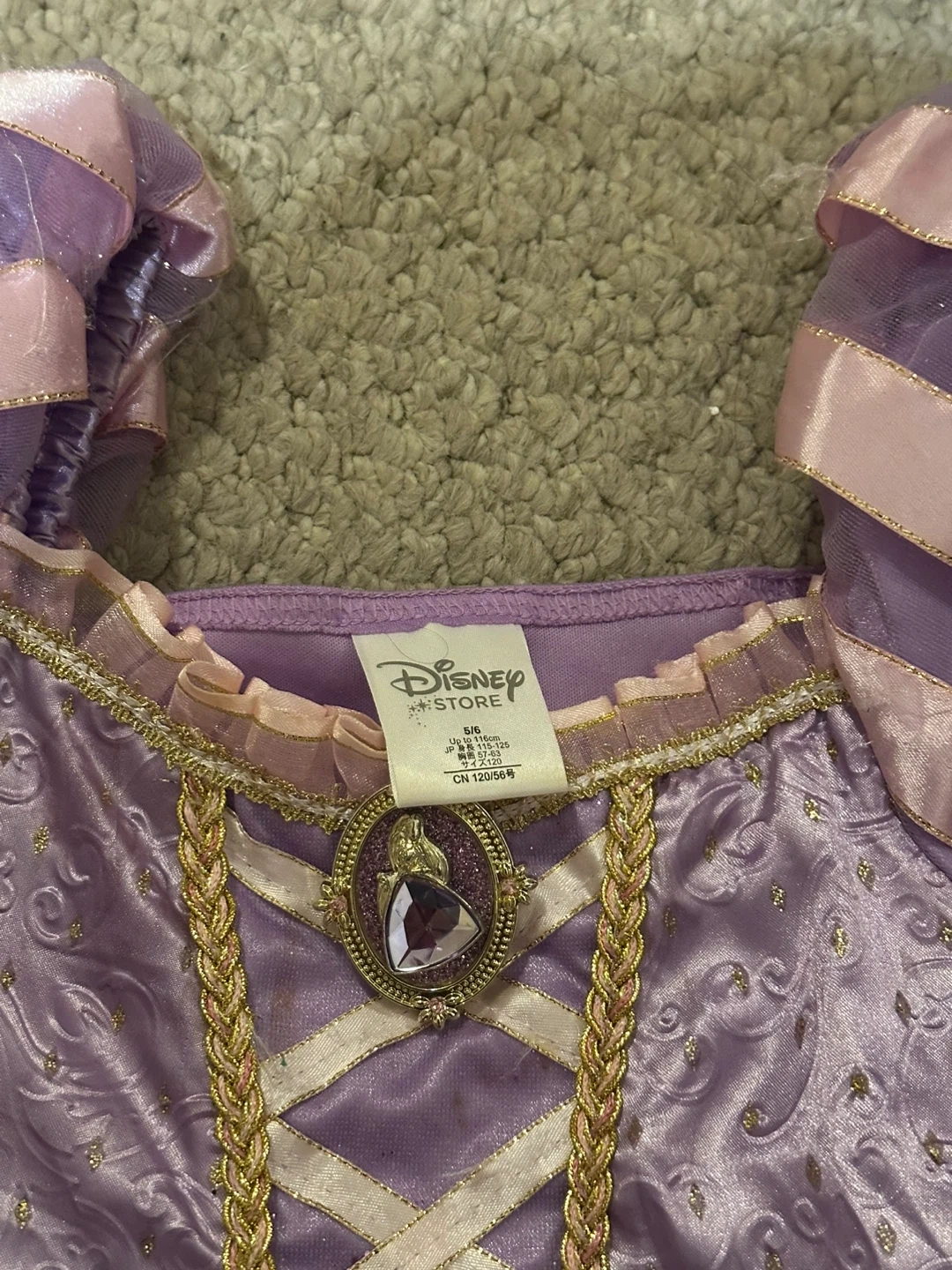 Selling a cute Rapunzel dress from the Disney Store! It's a size S, which is equivalent to a size 5/6. Perfect for dress-up or Halloween!