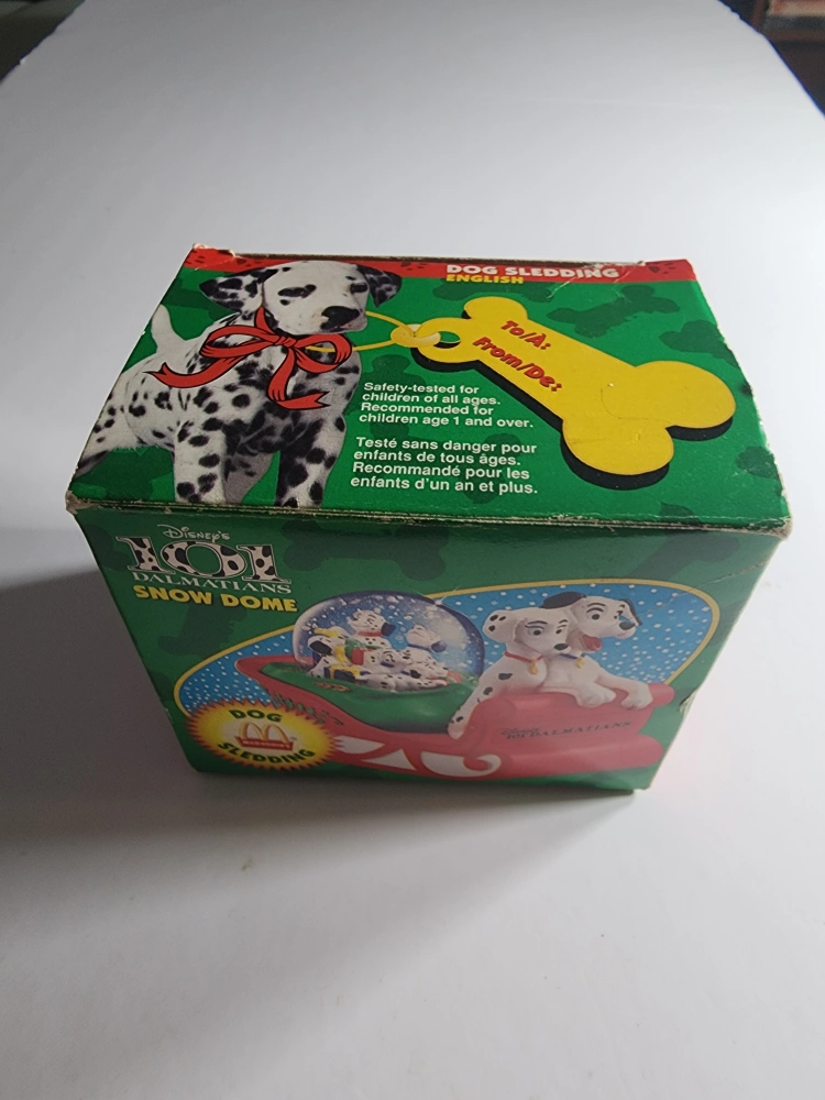129Selling a Disney's 101 Dalmatians Snow Dome from McDonald's! It's a cute snow globe featuring the 101 Dalmatians characters in a dog sled. The box is included and it's safety-tested for children of all ages