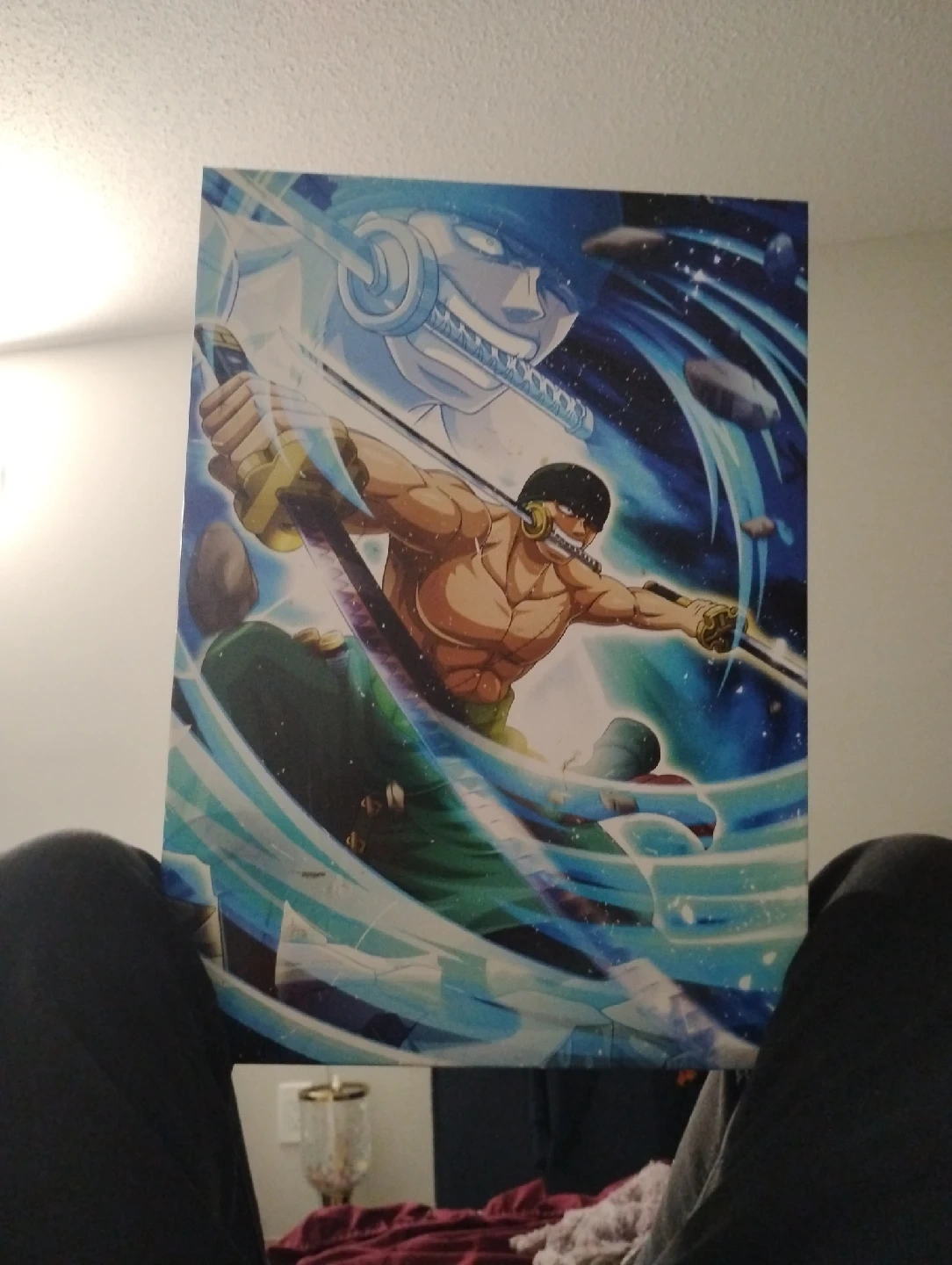 14Selling a Displate featuring Zoro from One Piece! It's a high-quality metal poster that's easy to hang and adds a unique touch to any room. The Displate team manufactures each plate individually using handcrafting techniques to give it a unique character and unmatched quality. It also includes a hologram tag to guarantee product authenticity