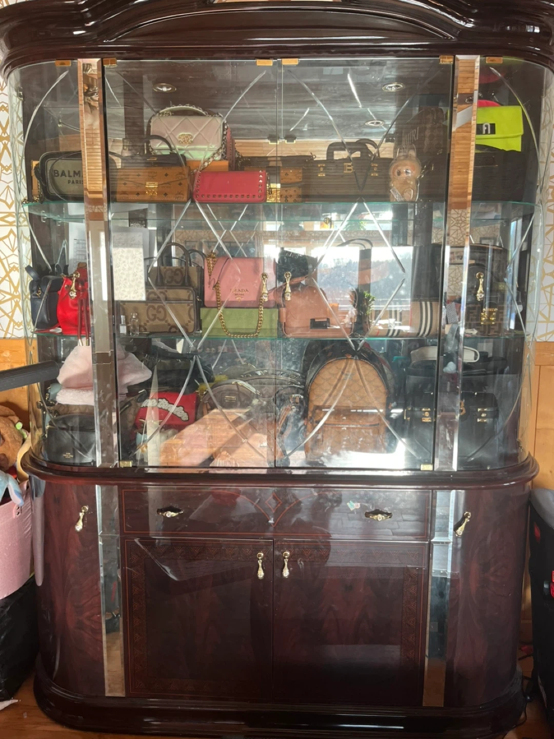 Dark Brown Glass Door TV Cabinet