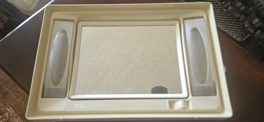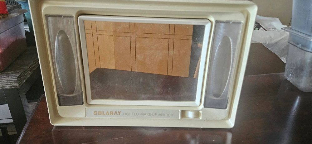 Here's a Solaray lighted make-up mirror! It's perfect for getting ready and making sure your makeup looks great. It's in good condition and ready for a new home