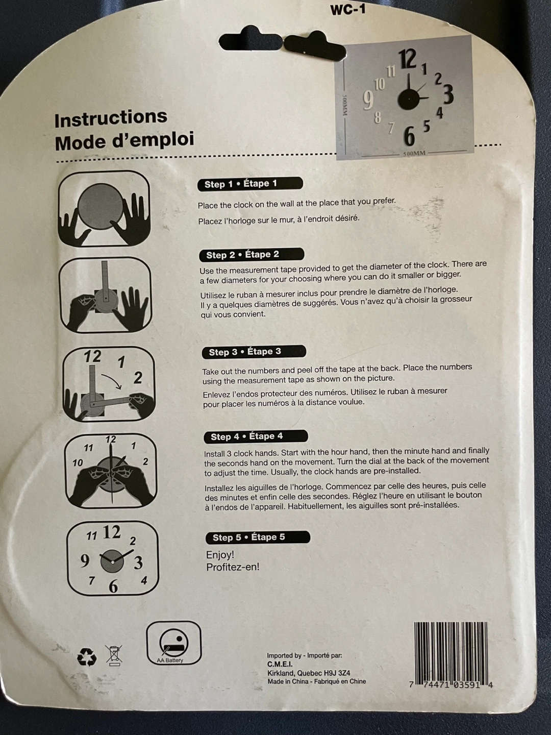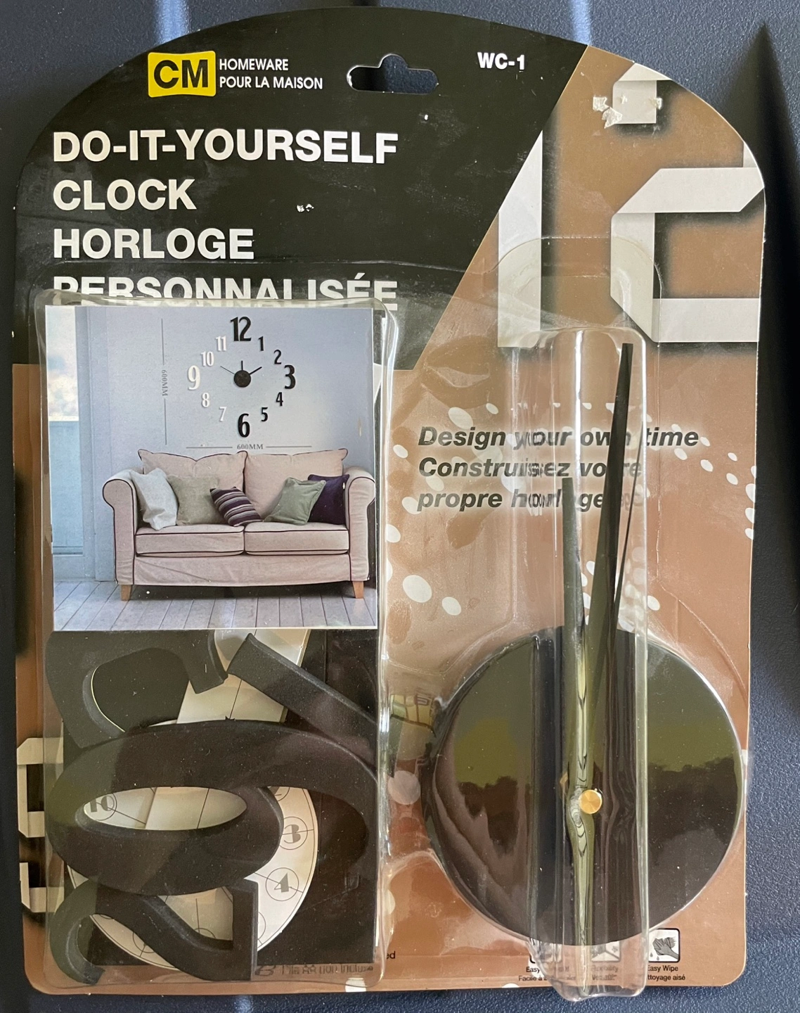 Here's a brand new CM Homeware do-it-yourself clock! It comes in its original packaging. Design your own time with this personalized clock. It requires one AA battery
