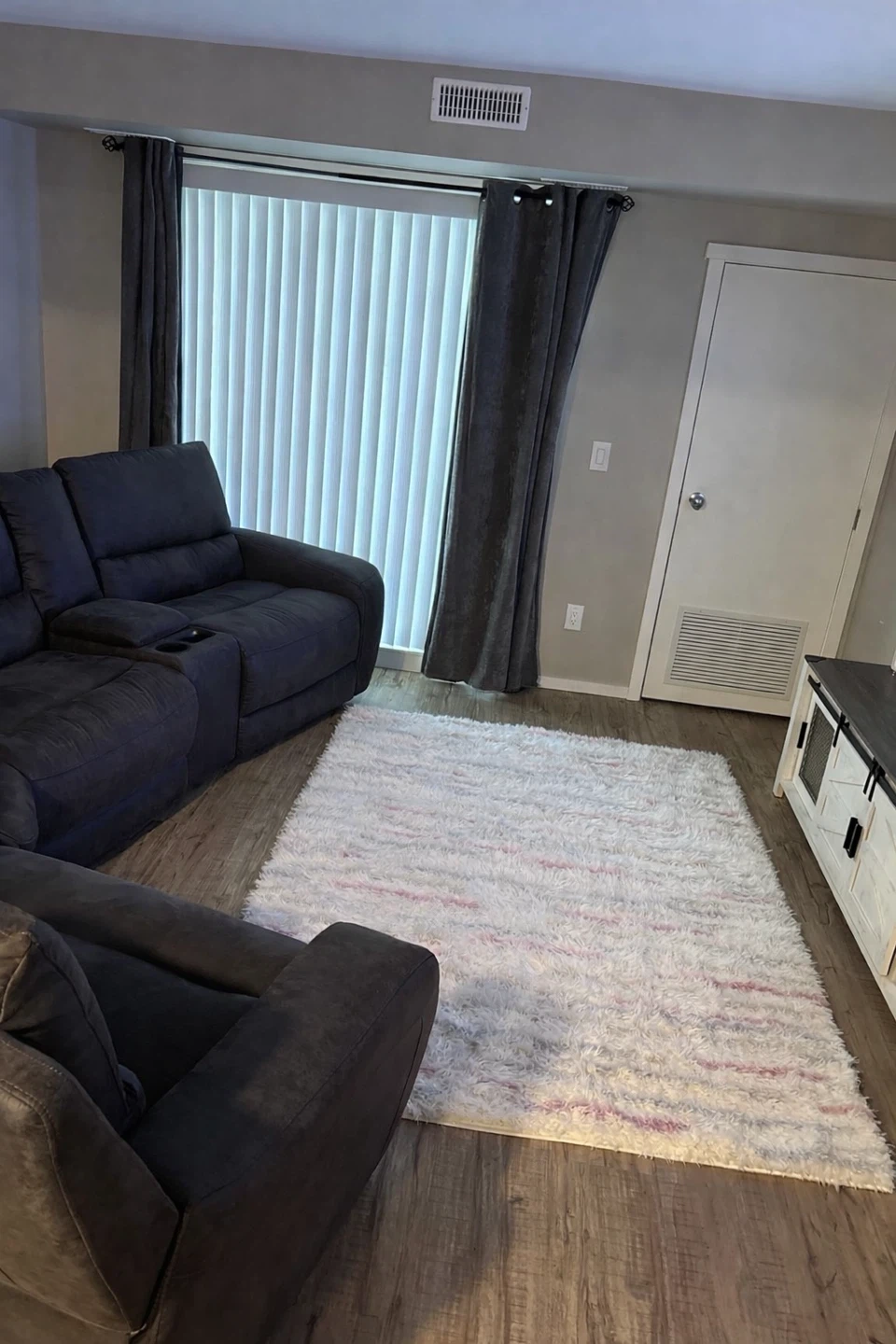 This Christian Siriano New York multi shag area rug measures 5'2" x 7'2". It's made with a polyester and polypropylene backing. Professional cleaning is recommended.
