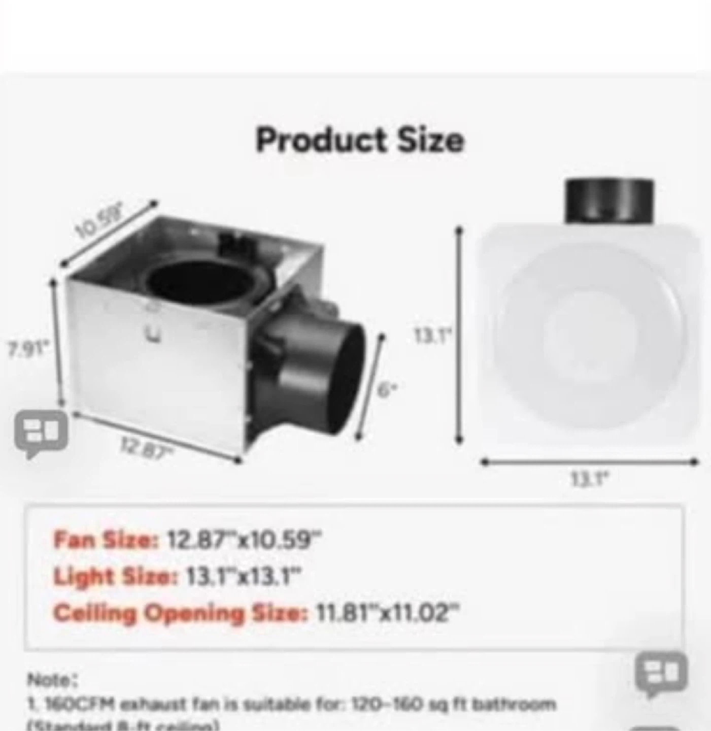 OREiN 3-in-1 Bathroom Exhaust Fan with Light & Humidity Sensor, 160 CFM, 1500LM, 3000K/4000K/5000K, 2200K Night Light, Auto-On at 60% Humidity, ETL & FCC Certified, Cut-Out 11.81" x 11.02" brand new in the box