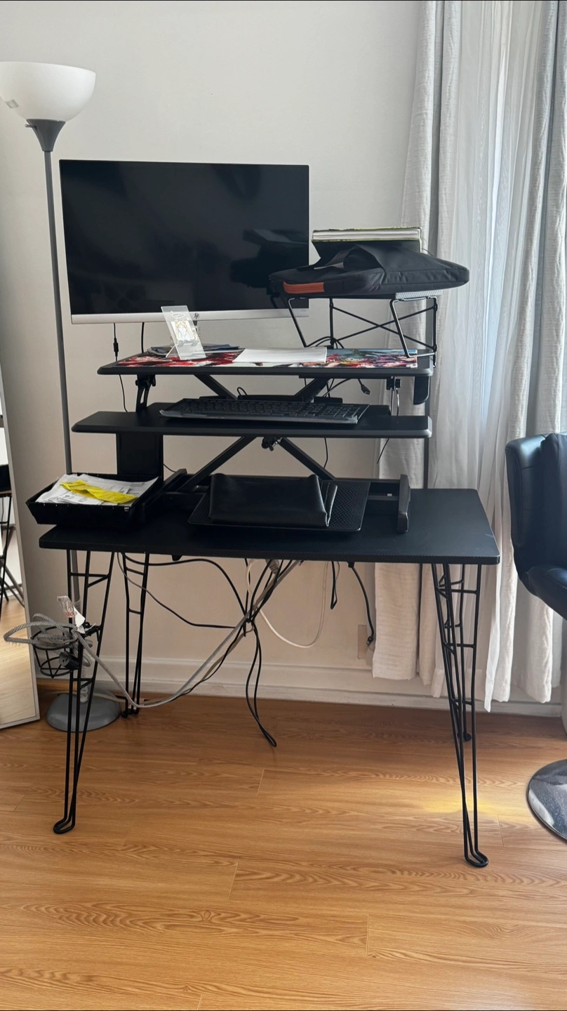 • Adjustable sit/stand riser with multiple tiers (brand: Simlift Pro)