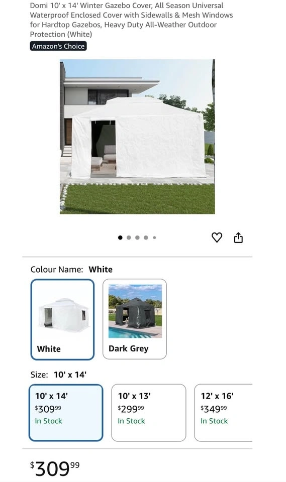 Brand new Domi 10’ x 14’ winter gazebo cover, still sealed in the box. All-season waterproof enclosure with sidewalls and mesh windows designed for 8x8 hardtop gazebos. Heavy-duty protection from rain, wind, snow, and insects.