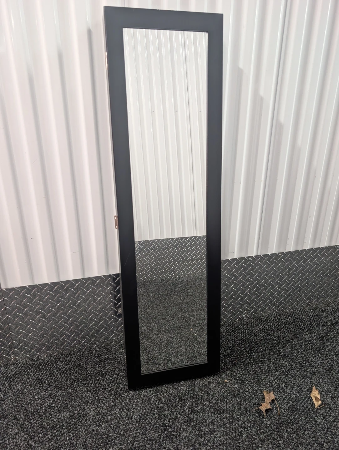 This standing jewelry armoire features a full-length mirror and an interior organizer for necklaces, earrings, and rings. It's perfect for keeping your accessories neatly stored and easily accessible. The black finish complements any room decor.