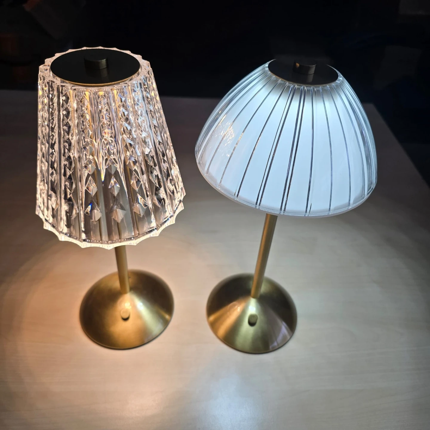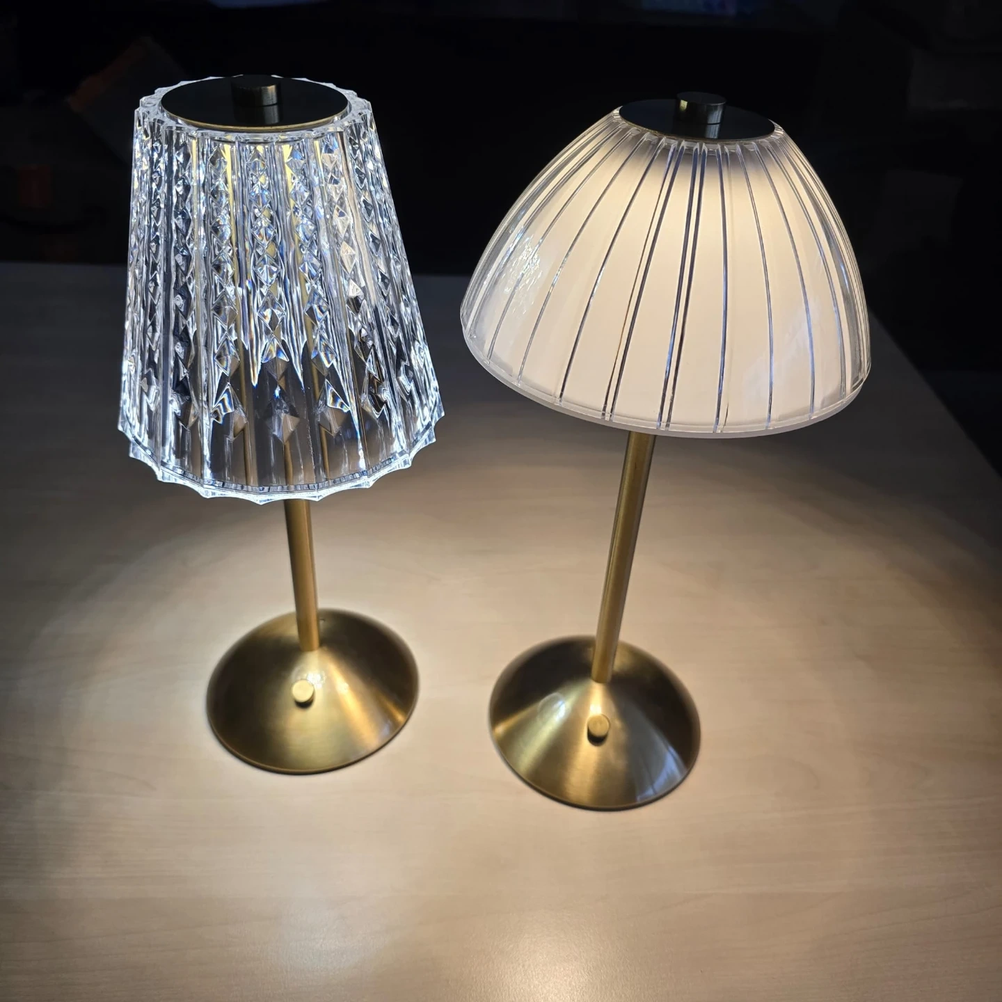 ๐ Beautiful crystal - style LED table lamp with an elegant brass base, giving off a beautiful, warm and sparkling light.