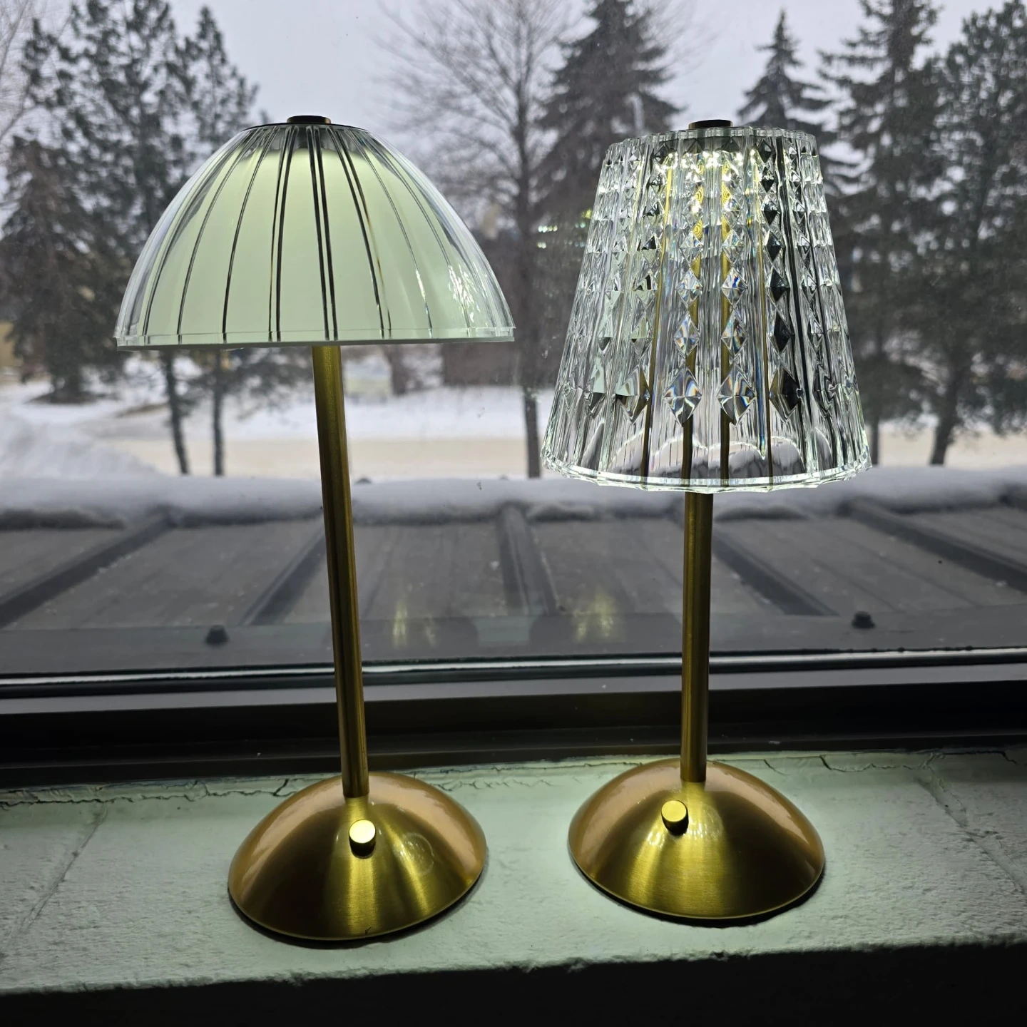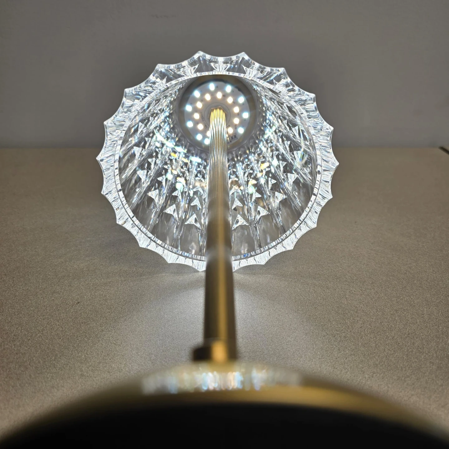 ๐ Beautiful crystal - style LED table lamp with an elegant brass base, giving off a beautiful, warm and sparkling light.
