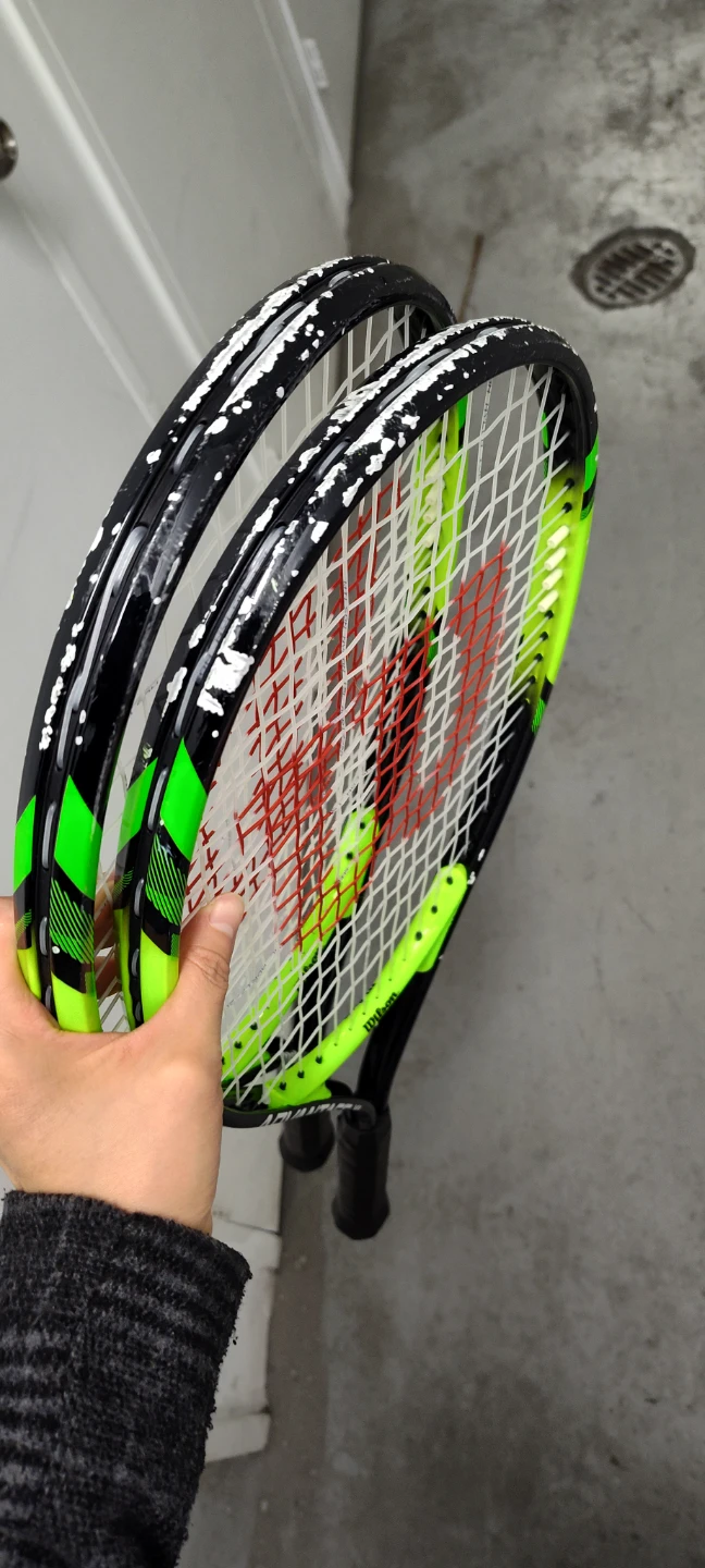 Two Wilson Advantage XL tennis racquets. Black and neon green colourway. Great for recreational play!