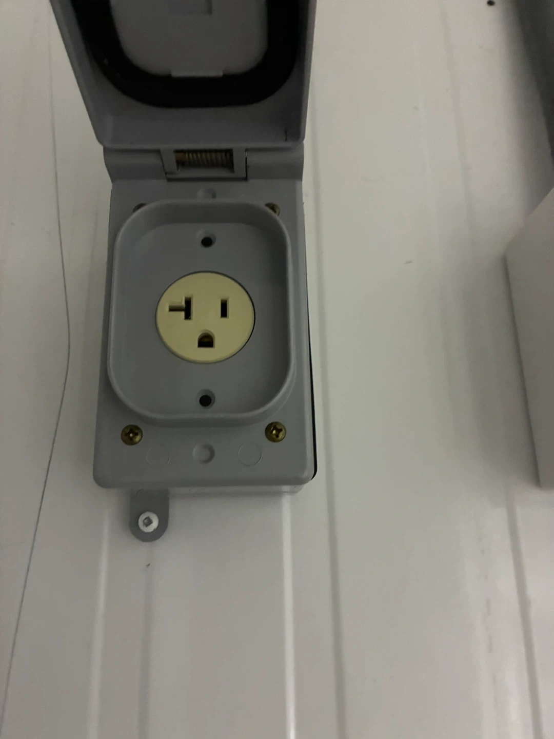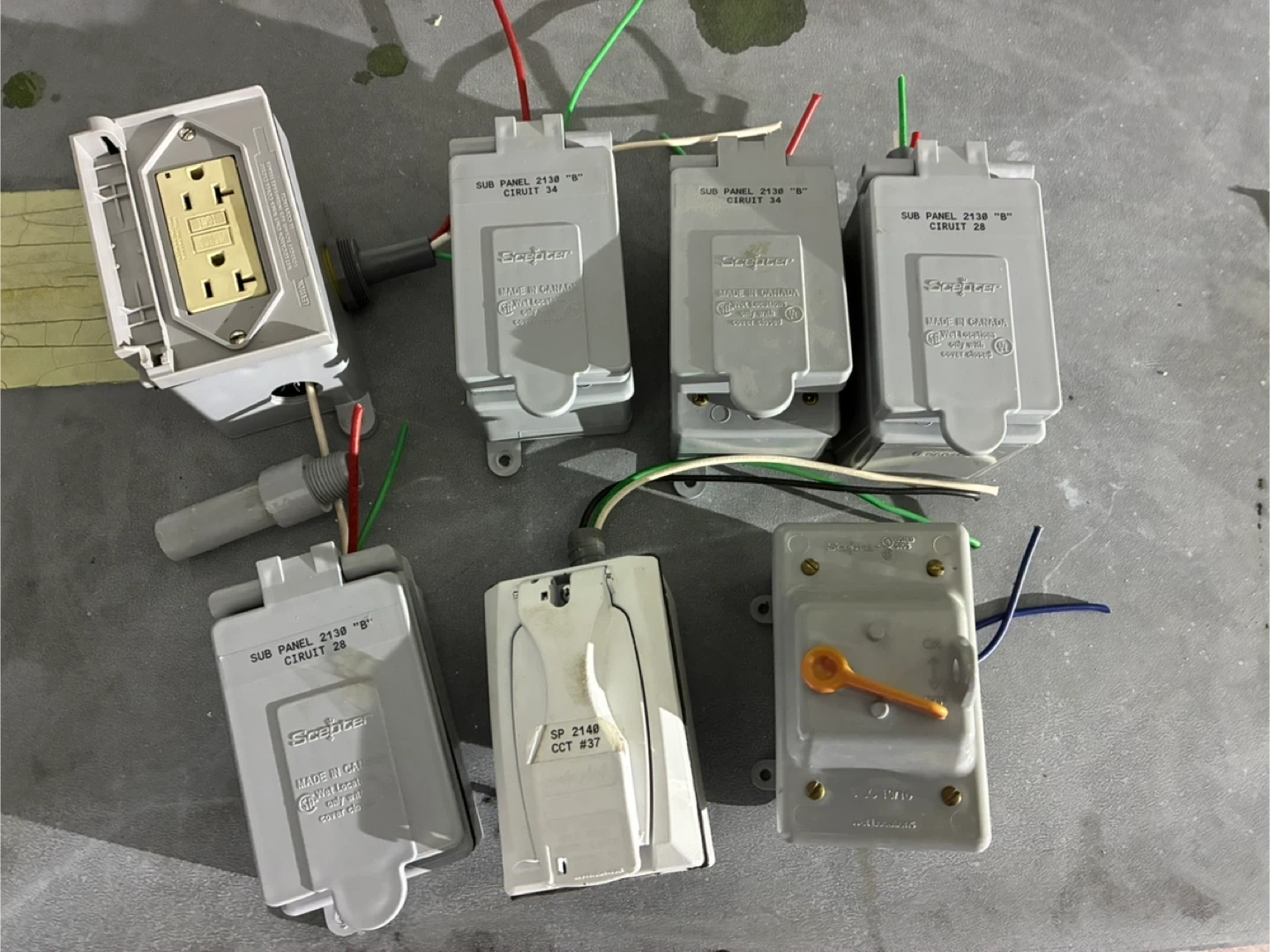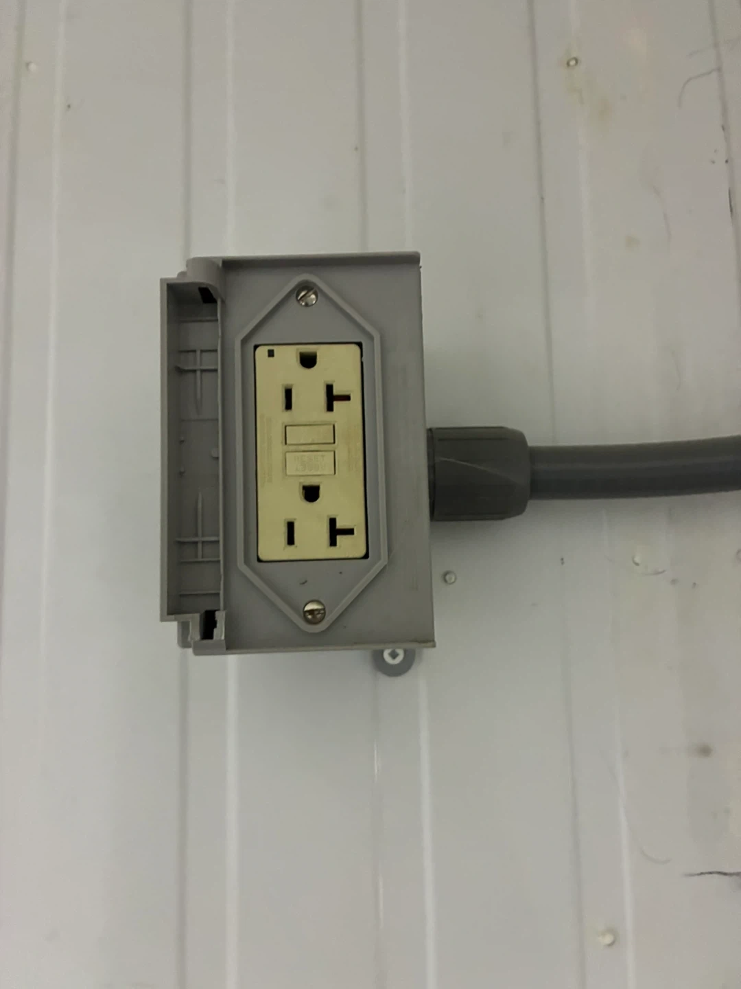 This is a Scepter brand outdoor GFCI duplex receptacle. It's made in Canada for wet locations and features a flip-up cover. This outlet is suitable for use where moisture is present.