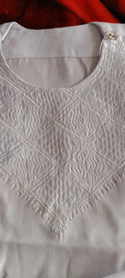 Adorable baby boy's traditional Shalwar Kameez. White cotton, beautifully embroidered. Size appears small. Perfect for special occasions or everyday wear.