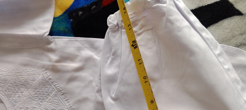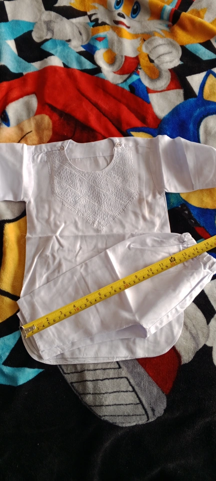 Adorable baby boy's traditional Shalwar Kameez. White cotton, beautifully embroidered. Size appears small. Perfect for special occasions or everyday wear.