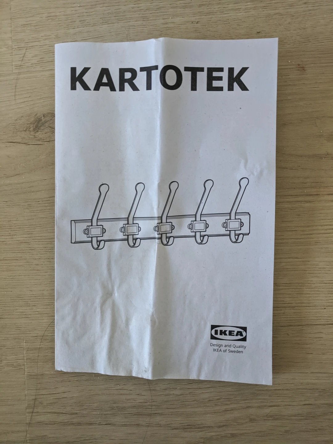 new IKEA Kartotek coat rack. It's still in its original packaging. This rack has five hooks for hanging coats and accessories. Pick up at 195 Merton Street Toronto or pick up at subway station Davisvill. And I can deliver it to your house but you need to pay me another $3. Thanks.