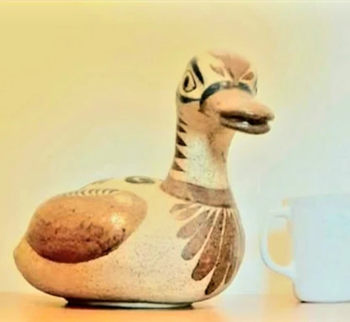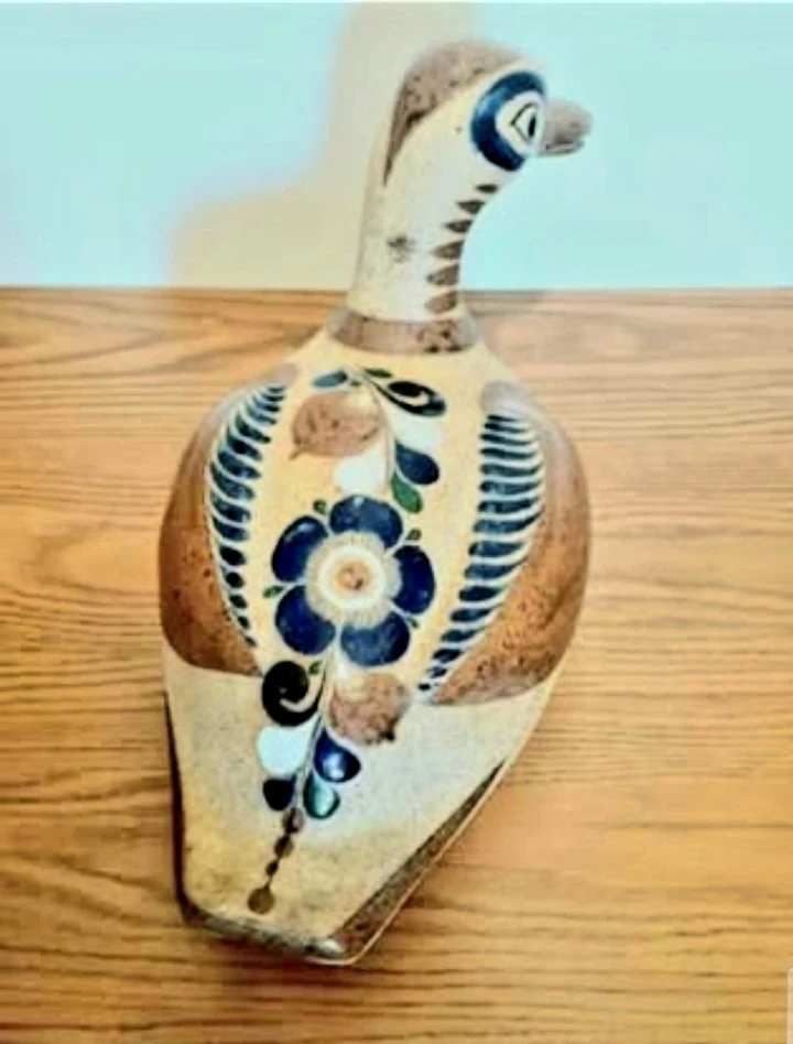 14" Vtg Signed Artist Hand Crafted Stoneware Tonala Duck