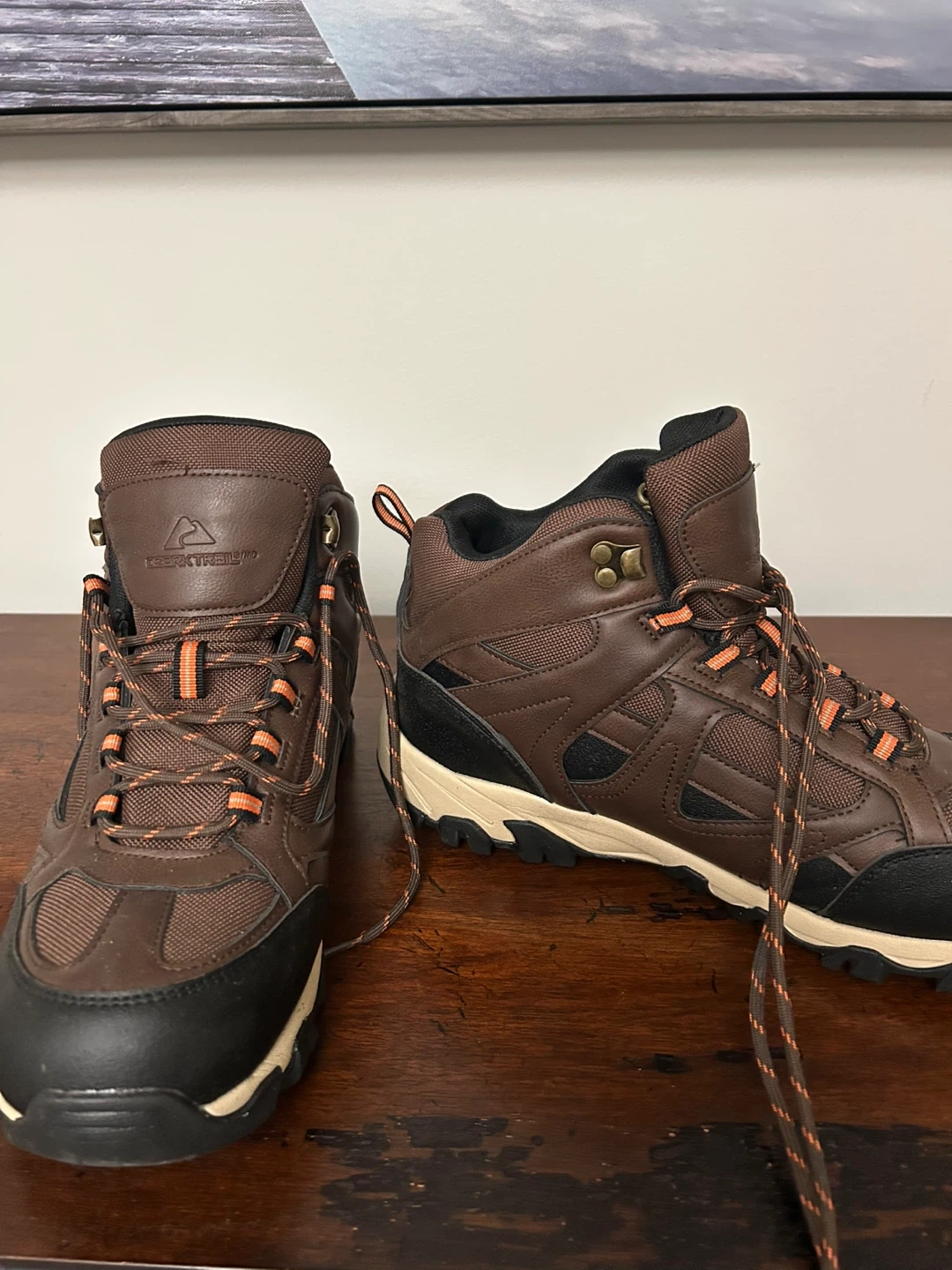 These size 11 brown Ozark Trail hiking boots are waterproof and ready for the trails! They show almost no signs of wear and still have plenty of life left in them. Perfect for your next outdoor adventure!