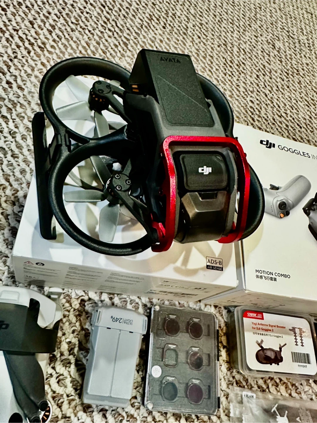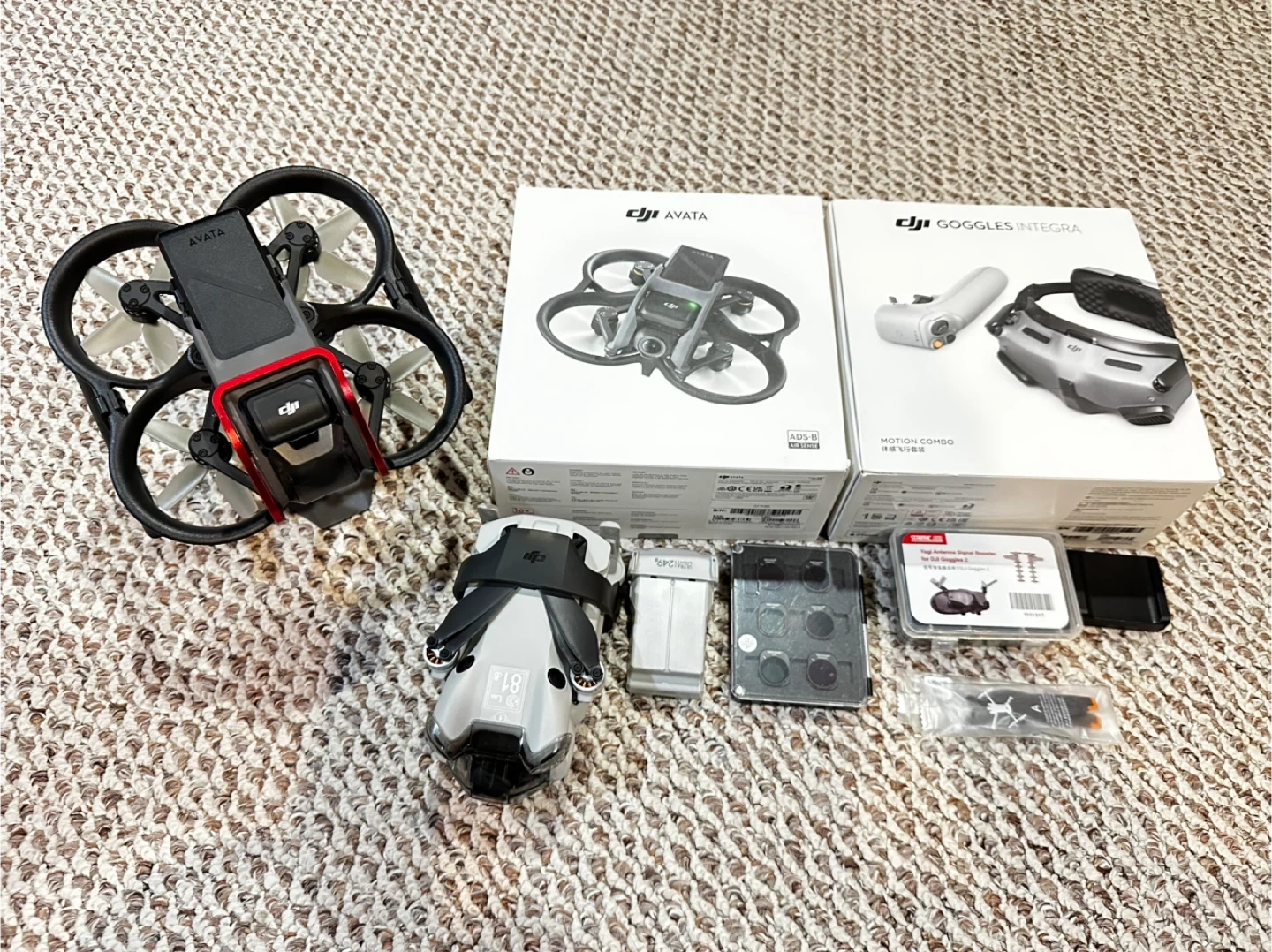 73Dji Mini 4 pro: -2 batteries (1 cycle charge) -Nd lens filter -Charger hub -Spare propeller Dji Avata 1 -Protective frame in front -1 battery (2 cycles charge) -Charger station for 1 battery Dji Goggles Integra motion combo -Dji goggles Integra -Dji motion controller 2 All of them mint condition You can use the motion combo to control dji avata and dji mini 4 pro too Can sell separately
