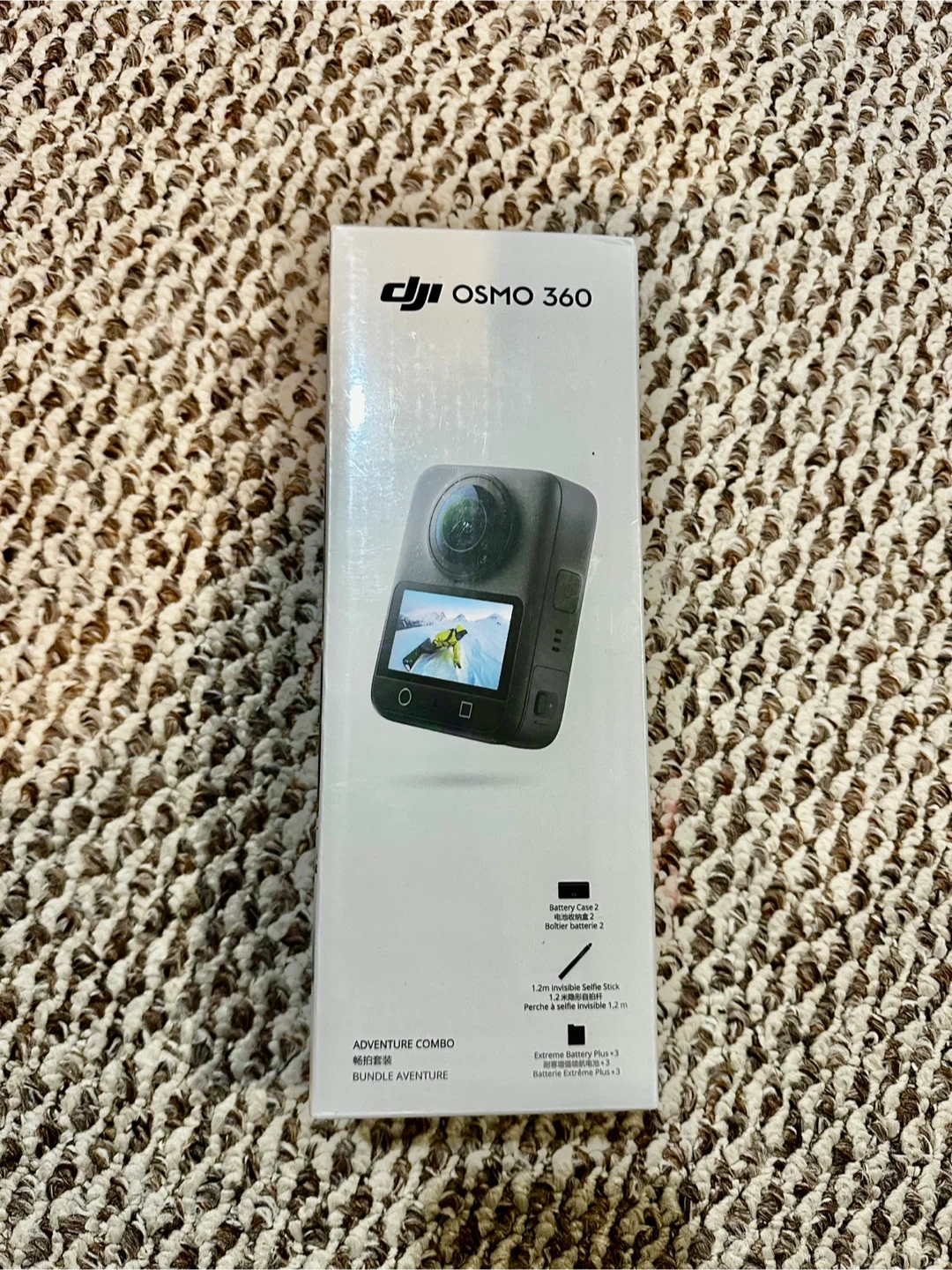 73Selling a DJI Osmo 360 Adventure Combo. It's in excellent condition and comes with everything in the box! - Osmo Lens Cleaning Cloth - Osmo 1.2m Invisible Selfie Stick - Osmo 360 Rubber Lens Protector - 2x Osmo Action Multifunctional Battery Case 2 - 6x Osmo Action Extreme Battery Plus (1950 mAh) - Osmo 360 Camera Protective Pouch - USB-C to USB-C PD Cable (USB 3.1) - Osmo Adjustable Quick-Release Adapter Mount Given as a birthday present. But no need to use it Still seal Originally retails for $812.99