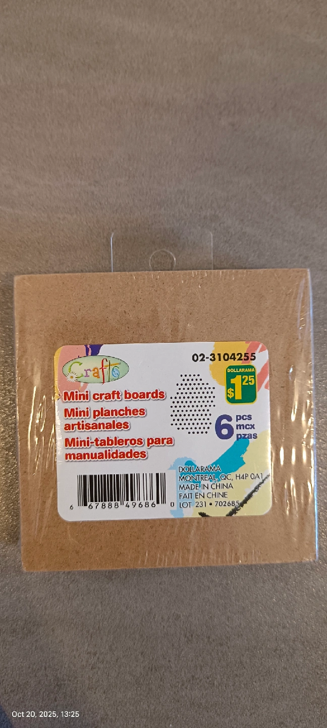 a pack of Crafts mini craft boards, still sealed in the original packaging! This pack includes 6 boards, perfect for small craft projects. Originally from Dollarama.