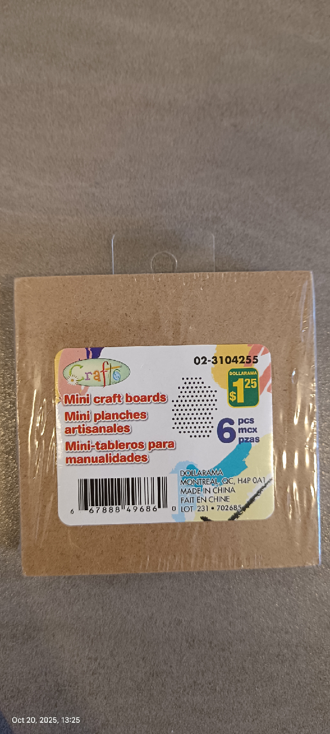 a pack of Crafts mini craft boards, still sealed in the original packaging! This pack includes 6 boards, perfect for small craft projects. Originally from Dollarama.