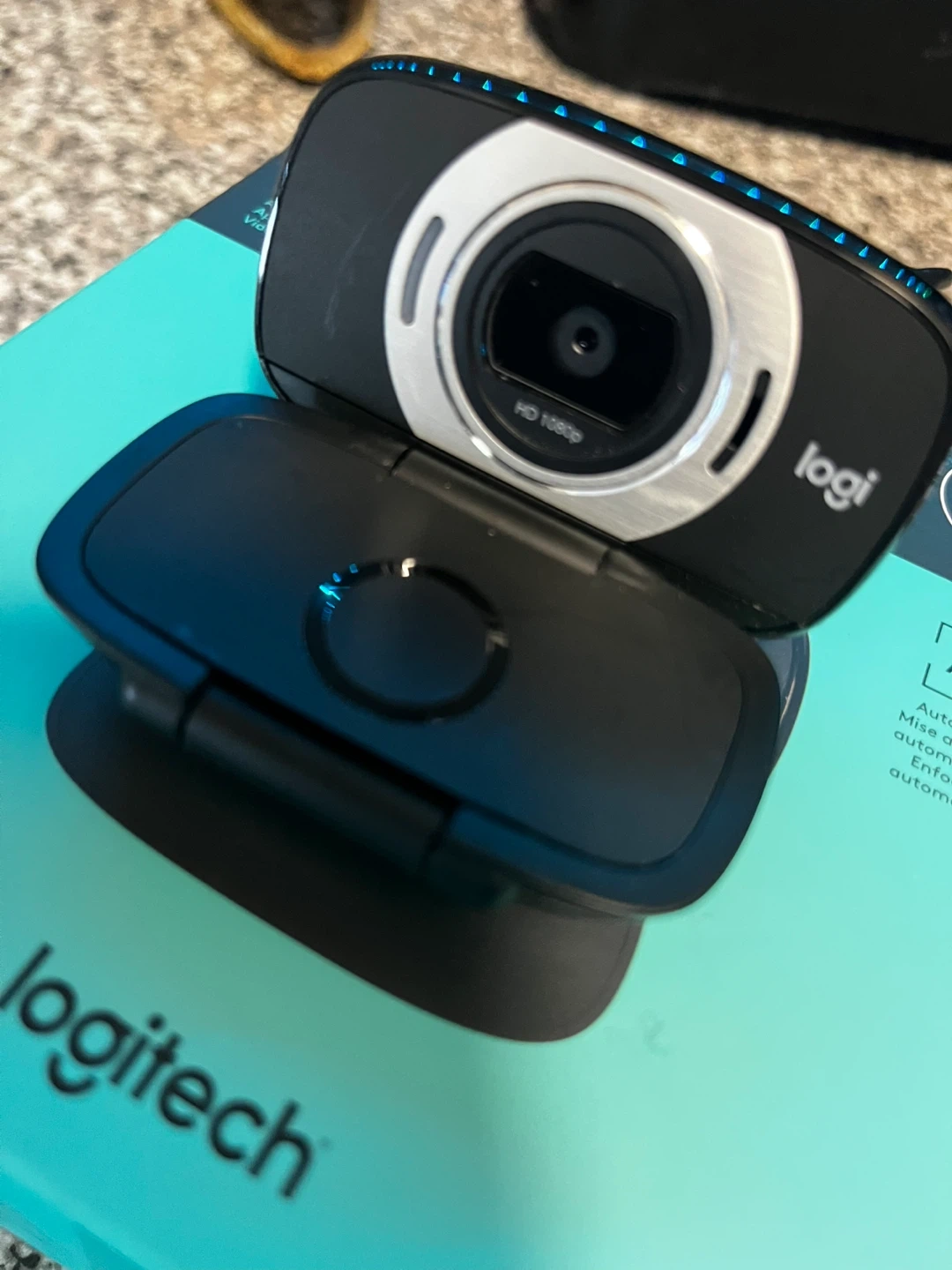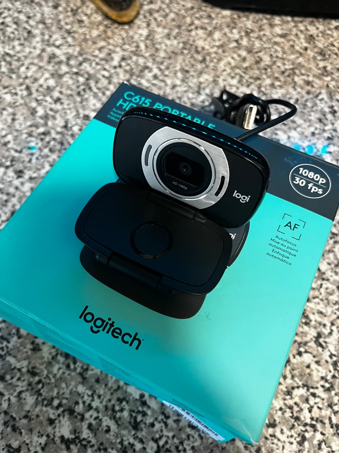 Logitech C615 portable webcam. It's HD 1080p with autofocus. Supports 30 fps video.