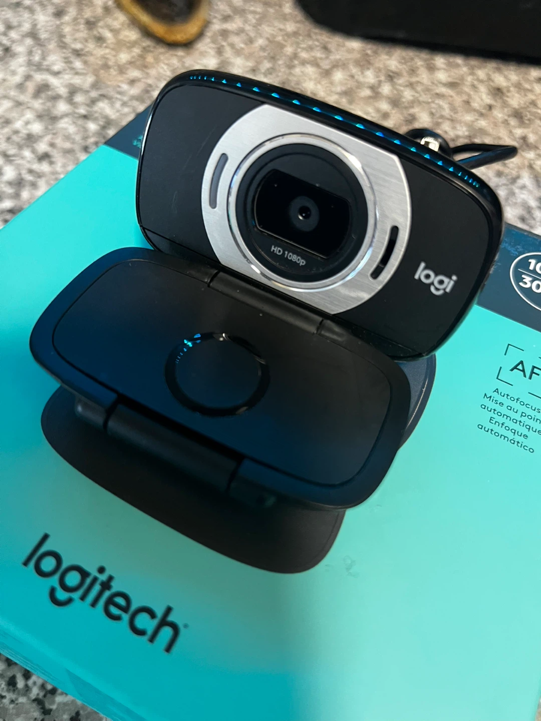 Logitech C615 portable webcam. It's HD 1080p with autofocus. Supports 30 fps video.