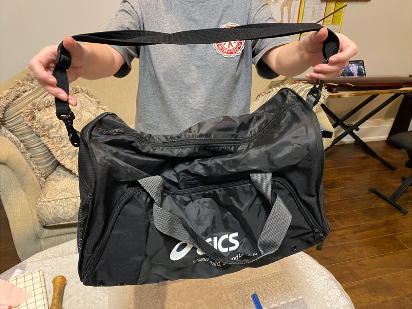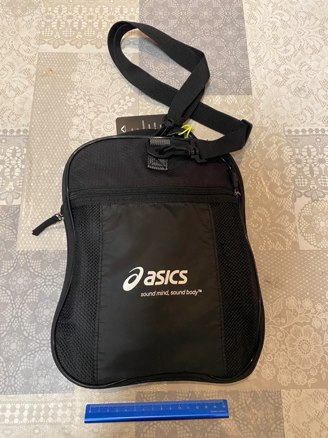 This is a black Asics bags. It includes a duffle bag or a Water-Resistant Sports Gym Bag. Both are made with durable material for active use. Portable Weekender Bag Lightweight for travel, Fitness and Camping.
