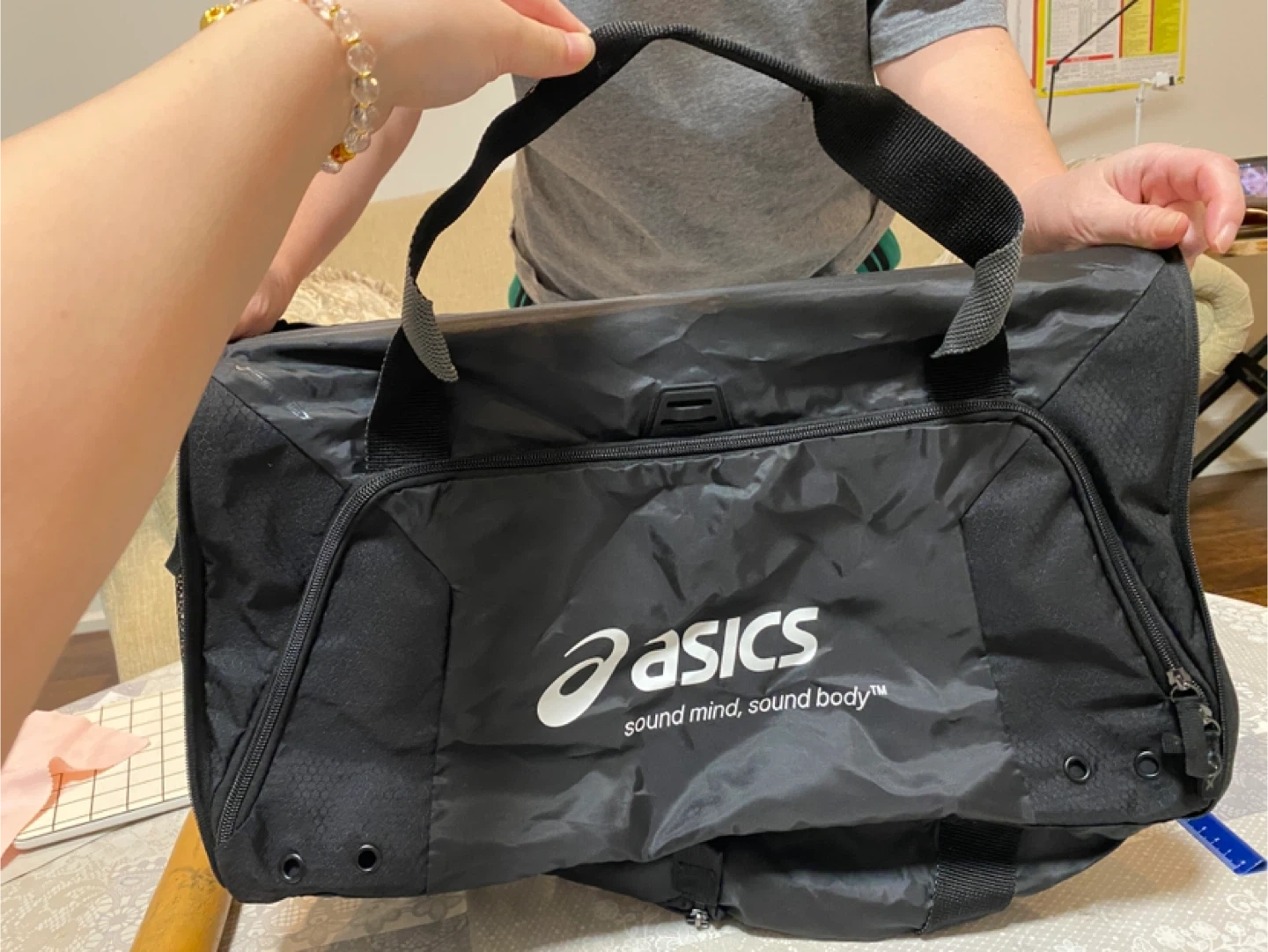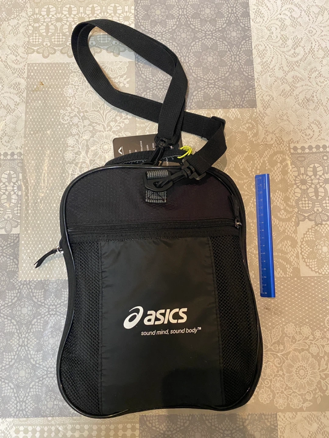 This is a black Asics bags. It includes a duffle bag or a Water-Resistant Sports Gym Bag. Both are made with durable material for active use. Portable Weekender Bag Lightweight for travel, Fitness and Camping.
