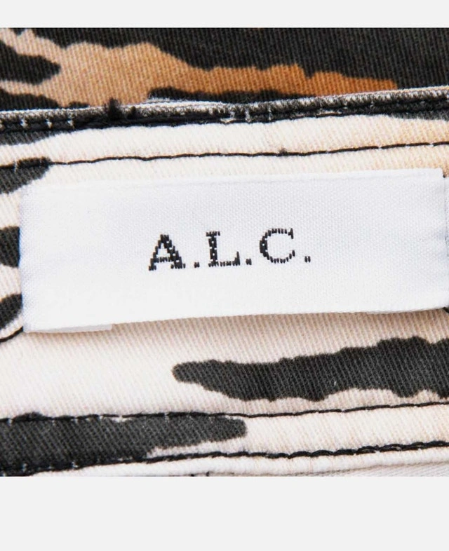Add a fierce touch to your wardrobe with these A.L.C. tiger print pants. Made from 97% cotton and 3% elastane for a comfortable stretch fit, these unique pants feature stylish lace-up detailing on the sides and a skinny fit that's sure to turn heads. Key Features: Material: 97% Cotton, 3% Elastane, Print: Tiger, Detailing: Lace-up sides, Fit: Skinny. Size: Small (4-6).