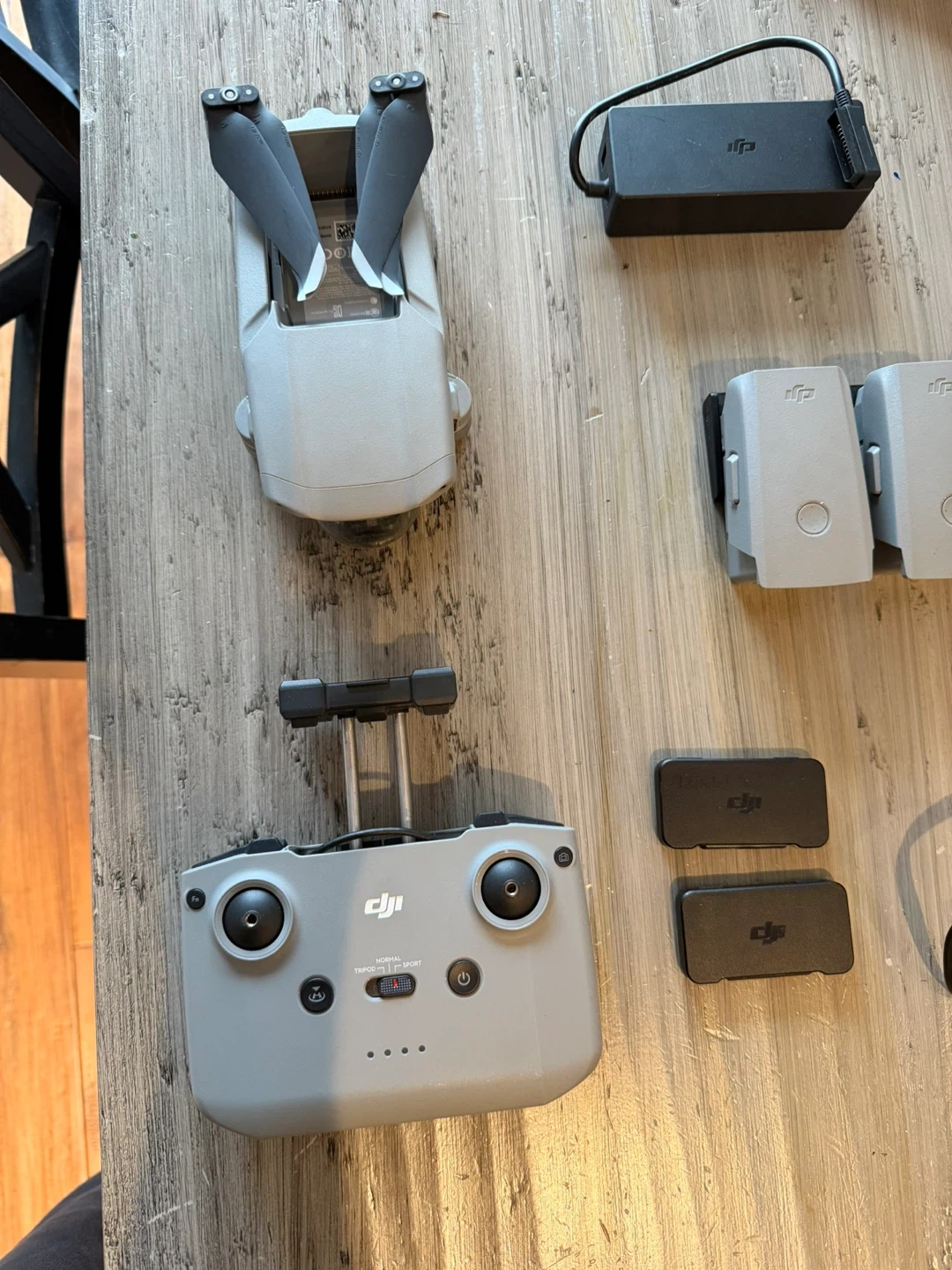 Complete DJI Mavic Air 2 Fly More Combo. Has the drone, remote controller, 3 iflight batteries, battery charging hub, power cable, and extra joysticks. Also includes the shoulder bag and 2 sets of DJI ND filters. Everything you need to get flying. Some wiggle room on price. Delivery avalible if you’re near the city and paying asking price.