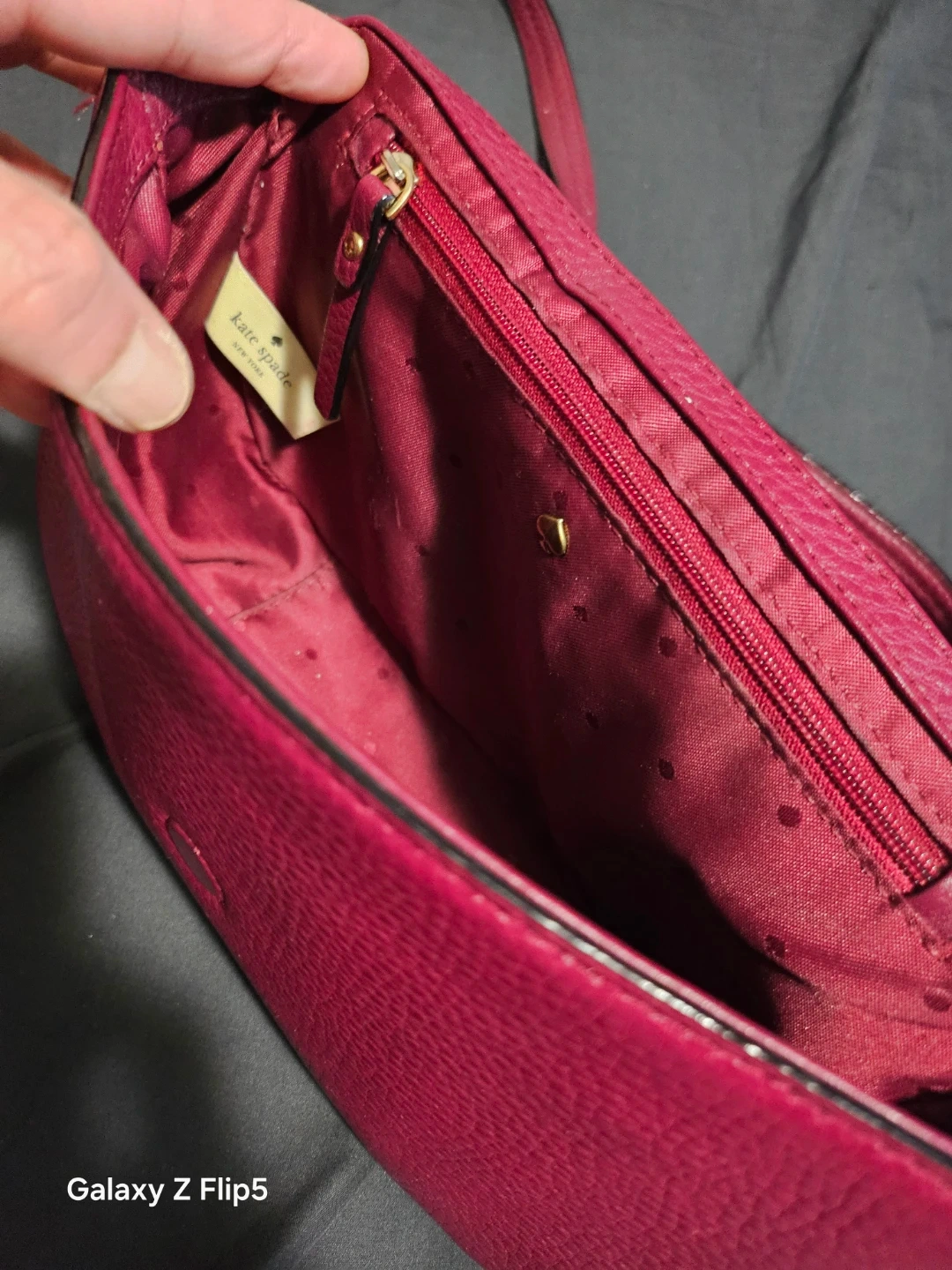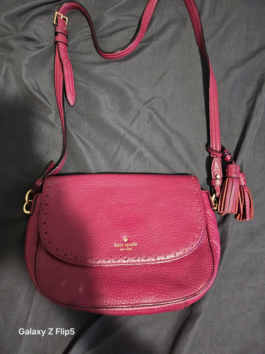 Selling a Kate Spade crossbody bag in a beautiful burgundy colour! It's in great condition and perfect for everyday use. The bag features a zip closure pocket inside and a stylish tassel detail. It's the perfect size to carry your essentials!