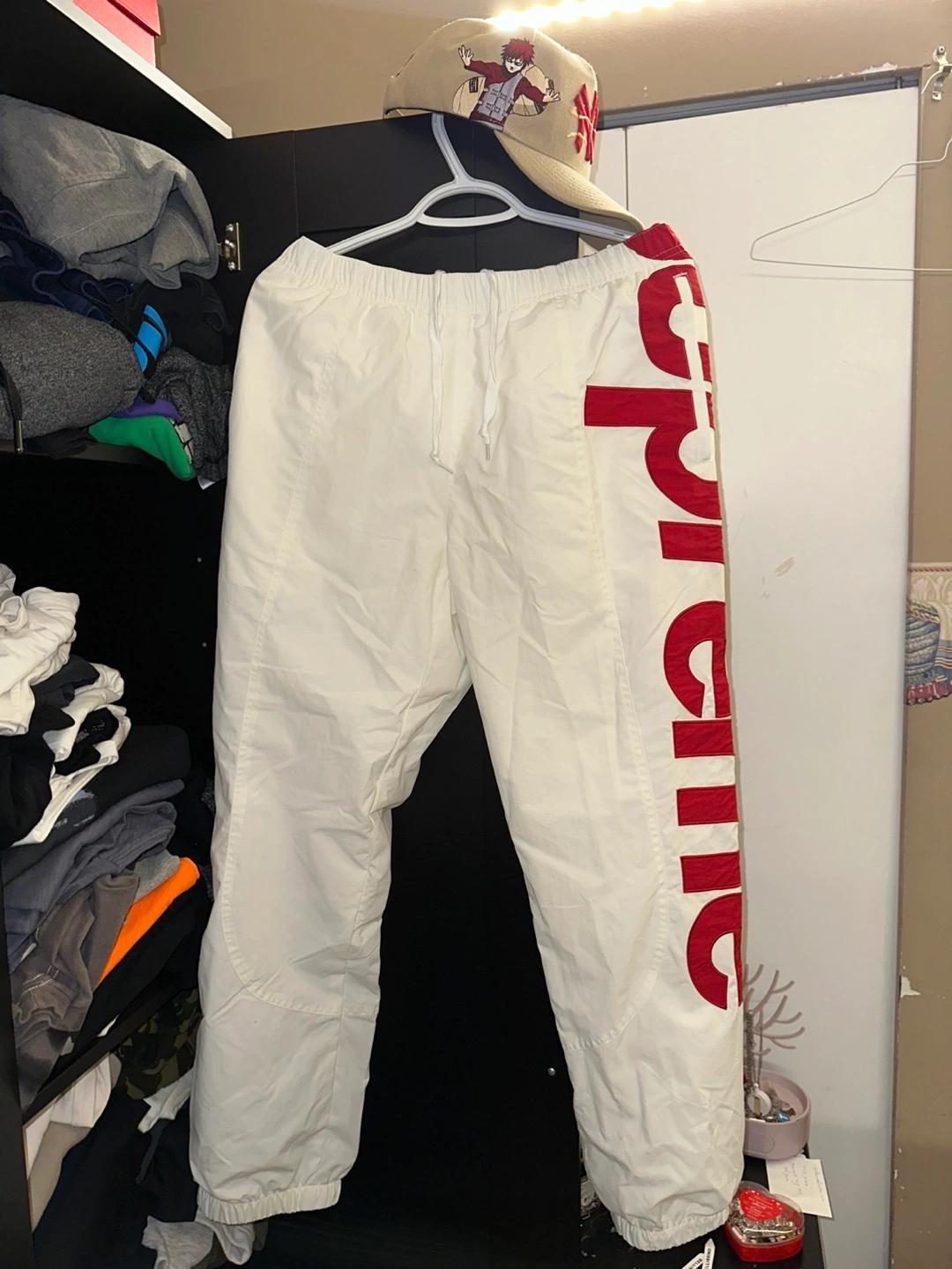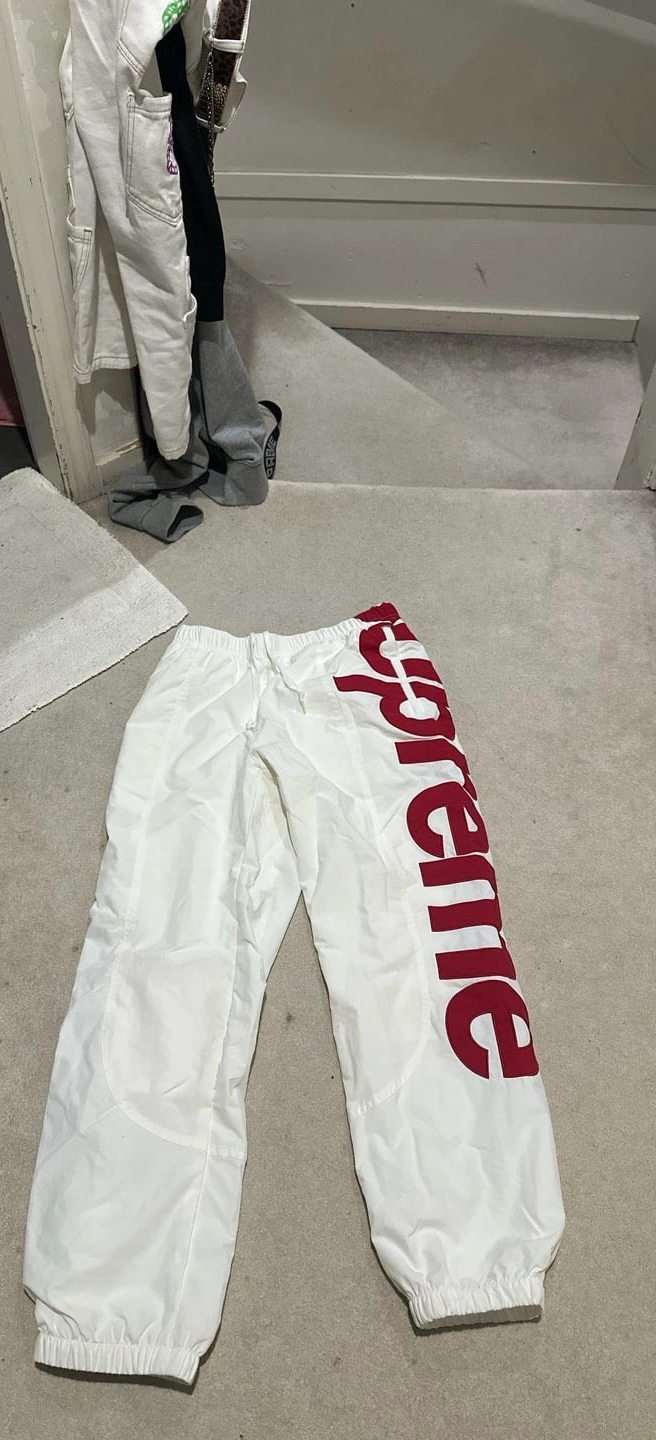 Supreme Spellout Track Pants in white and red