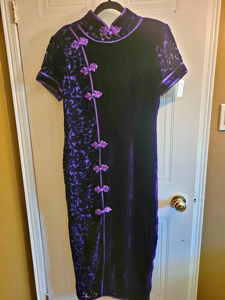 Vintage Velvet purple dress from China. Chinese styled design. Similar to Qipao/ Cheongsam dress. Very soft velvet.