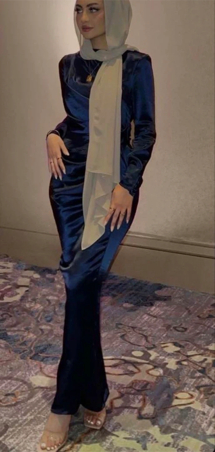 Navy Blue Satin Drape maxi Dress
