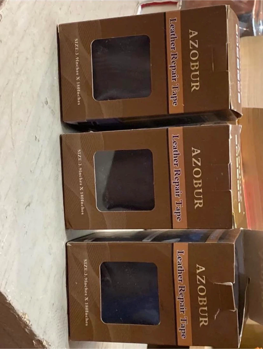 This is AZOBUR Leather Repair Tape. It's 3.9 inches by 180 inches. It's great for fixing rips and tears in leather items!