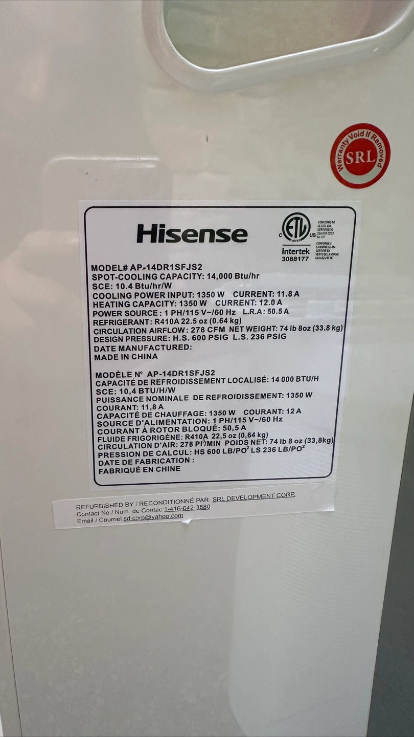 Selling a Hisense portable air conditioner. It's in good working condition and comes with the hose.