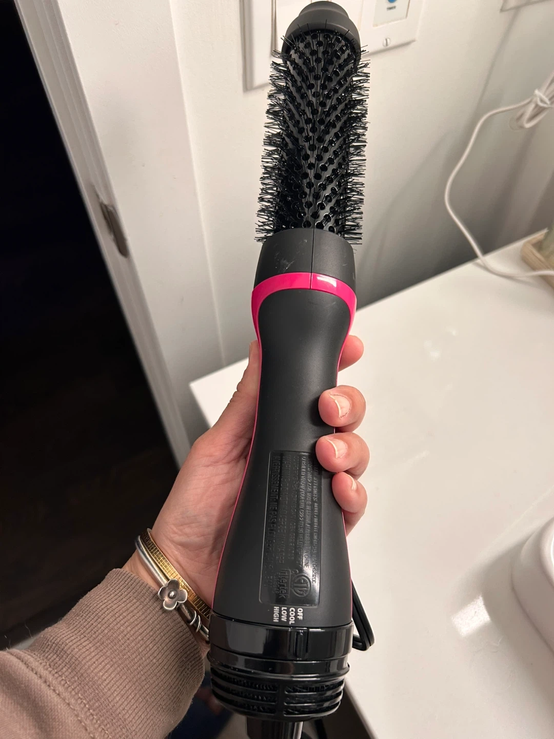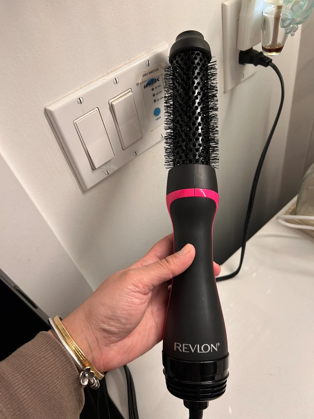 This is the Revlon One-Step Root Booster Round Brush Dryer & Styler. It features a 1.5" round brush for styling. Flexible temperature control with heat/speed settings is included.
