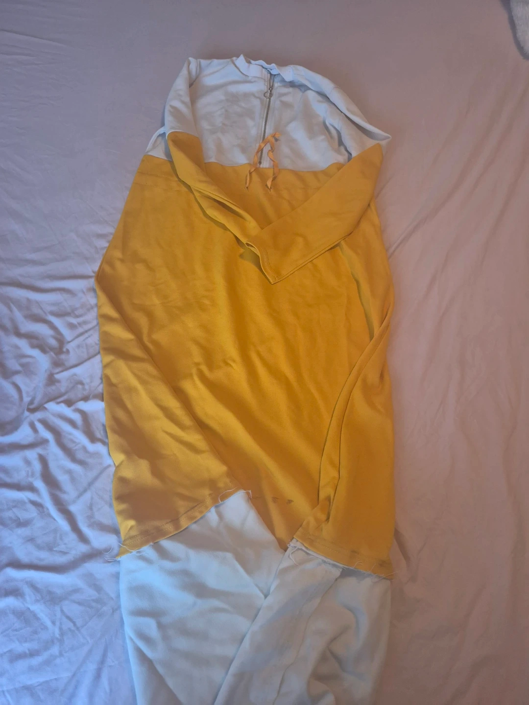 This is a colour-blocked hoodie with a zip-up front and drawstring. It's made from a soft fabric. This hoodie is great for casual wear.